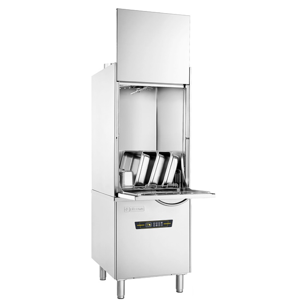 Котломоечная машина Elframo LP 61 VE используется на предприятиях общественного питания для мойки котлов, гастроемкостей и кухонного инвентаря. Модель оснащена электронной панелью управления. Рама, корпус и бойлер выполнены из нержавеющей стали AISI 304 с двойными стенками, поверхностные фильтры бака, моющие и ополаскивающие рукава - из нержавеющей стали.