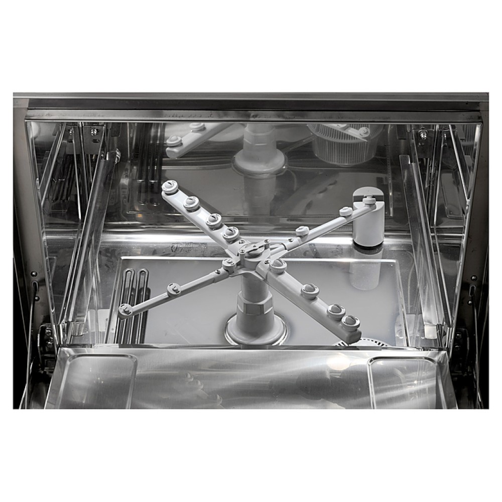 Посудомоечная машина с фронтальной загрузкой Dihr GS 50 используется в барах, ресторанах и гостиницах для мойки стаканов, чашек, небольших тарелок и приборов. Обтекаемая форма свода предотвращает падение капель. Встроенный слив полностью удаляет воду из камеры. Корпус выполнен из нержавеющей стали.