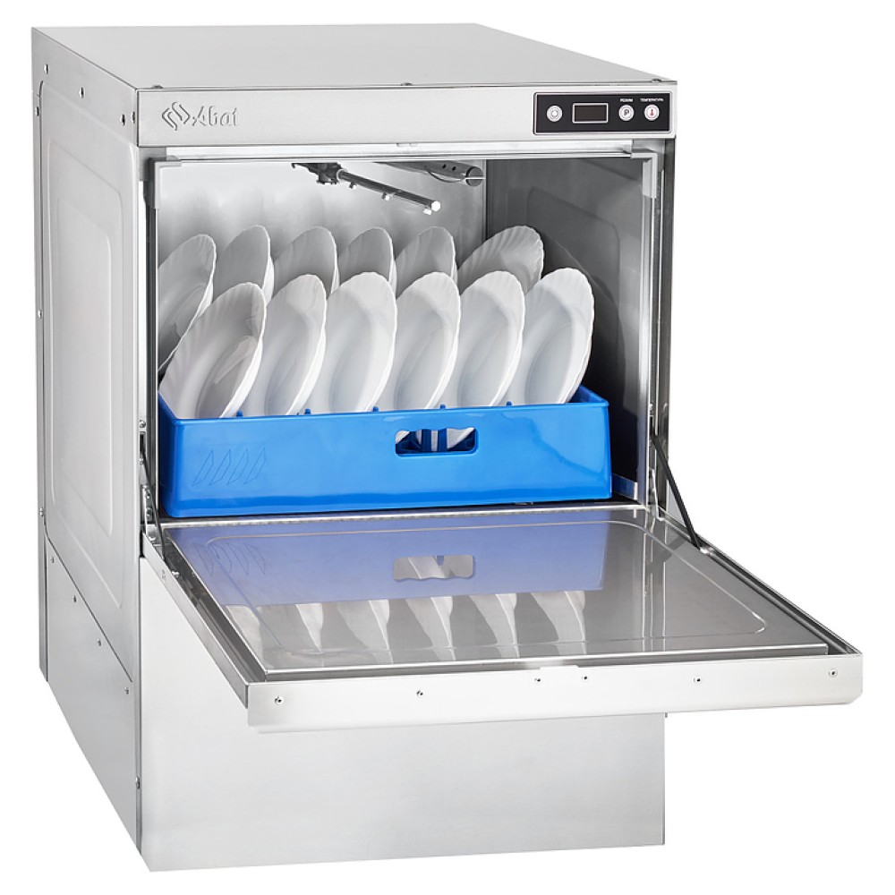 Посудомоечная машина с фронтальной загрузкой Abat МПК-500Ф-01 используется на предприятиях общественного питания и торговли для мойки тарелок, стаканов, бокалов, столовых приборов, а также гастроемкостей и противней. Модель оснащена электронной панелью управления, мощными нержавеющими ТЭНами и съемными нержавеющими форсунками. Детали, контактирующие с водой, и облицовка выполнены из нержавеющей стали AISI 304, разбрызгиватели - из нержавеющей стали AISI 321.