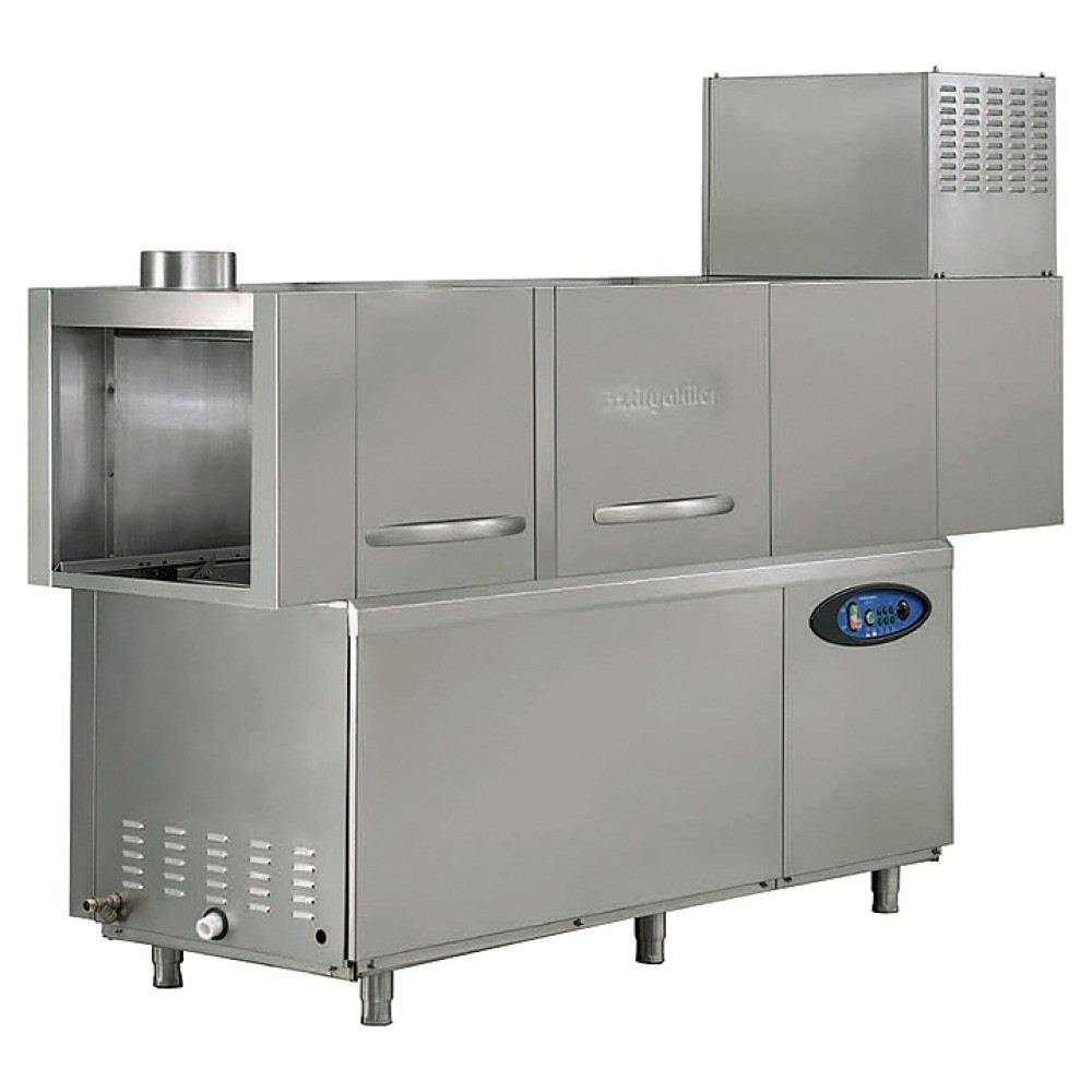 Тоннельная посудомоечная машина OZTI OBK 2000 используется на предприятиях общественного питания, а также в организациях, деятельность которых связана с использованием кухонных принадлежностей, требующих чистки и мойки после работы с ними, для мытья посуды и столовых приборов. Корпус, моечная ванна, бойлер и разбрызгиватели выполнены из нержавеющей стали.