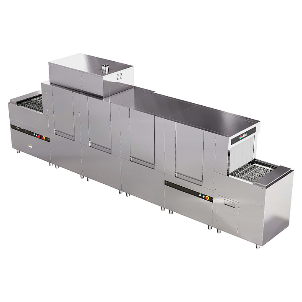 Туннельная посудомоечная машина Abat МПТ-3000К используется на предприятиях общественного питания и торговли для мойки тарелок, стаканов, бокалов, столовых приборов, а также гастроемкостей и противней. Модель с пальчиковым конвейером оснащена электронной панелью управления и ванной со скругленными углами, облегчающими гигиеническую уборку машины. Металлические детали выполнены из высококачественной нержавеющей стали.