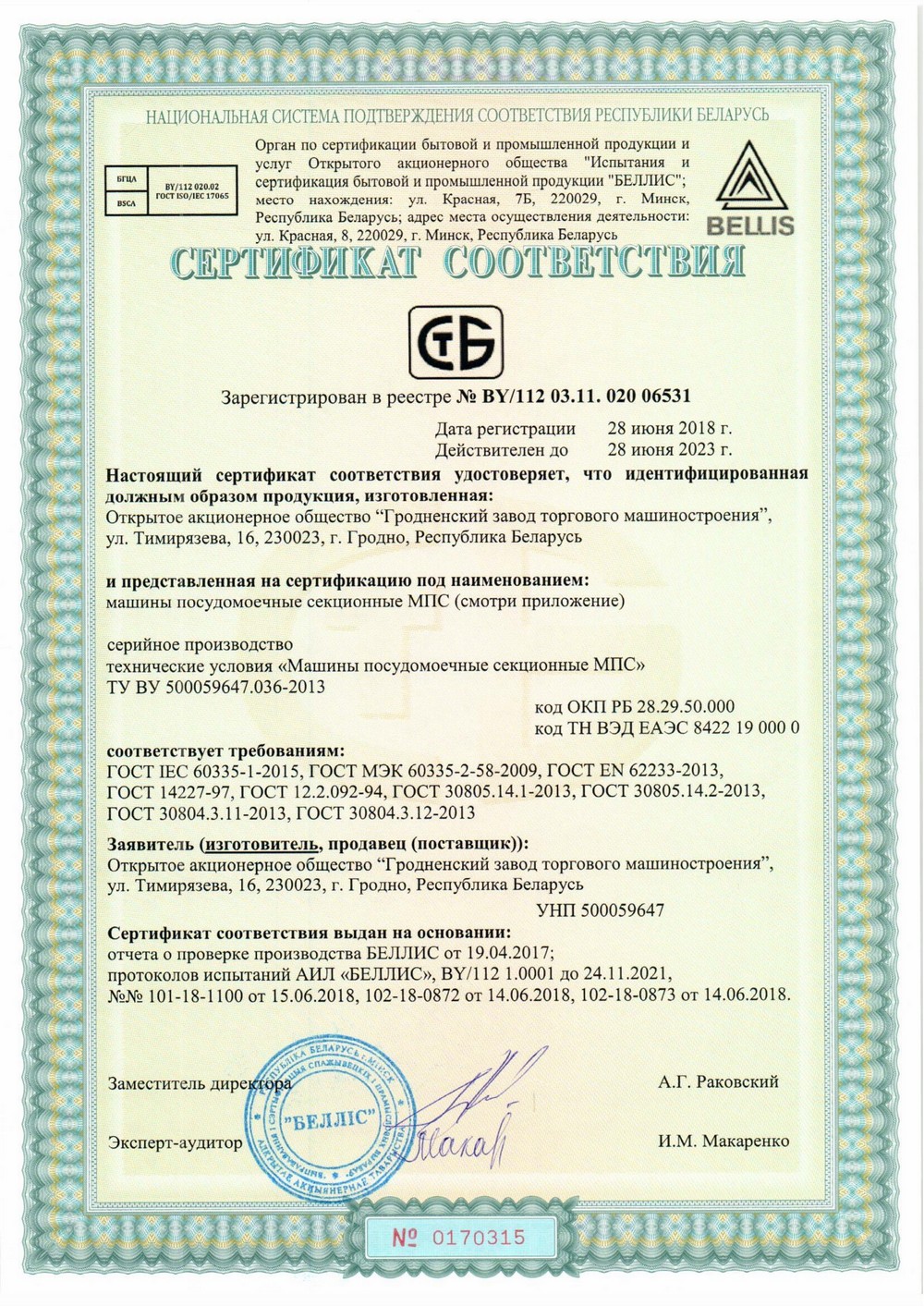 | Загрузка посудыслева | Мощность42.5 кВт | Напряжение380 В |
