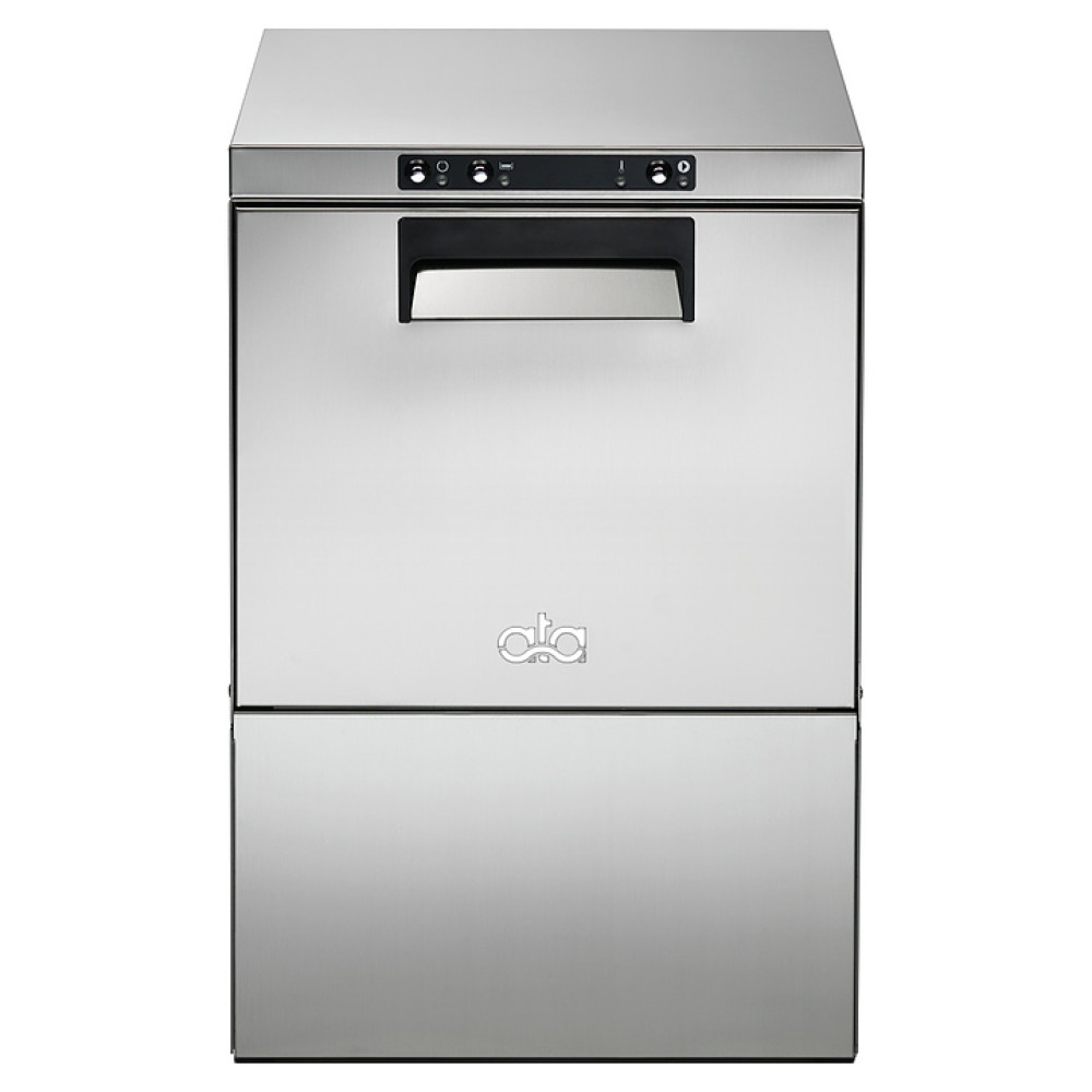 Стаканомоечная машина ATA B 21 предназначена для мытья в кассетах стаканов, чашек и столовых приборов с применением жидких моющих и ополаскивающих средств на предприятиях общественного питания и торговли. Модель оснащена фронтальной камерой с откидной дверью, кабелем питания с вилкой и электромеханической панелью управления. Корпус, дверь, внутренняя облицовка камеры, моечные рукава и фильтр выполнены из высококачественной нержавеющей стали AISI 304, рукоятка, панель управления и окантовка двери – из полимеров черного цвета, кнопки с хромированным покрытием.