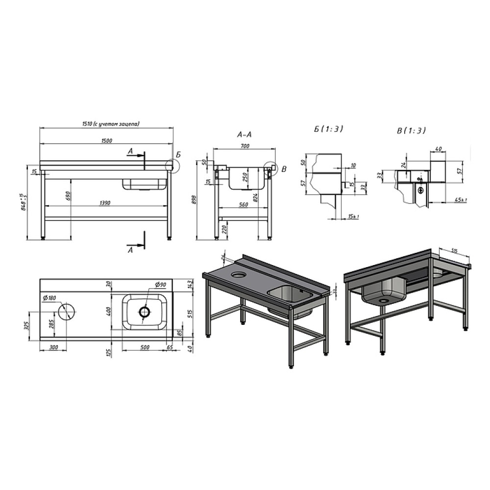 | Высота850 мм | Глубина700 мм | Ширина1500 мм |