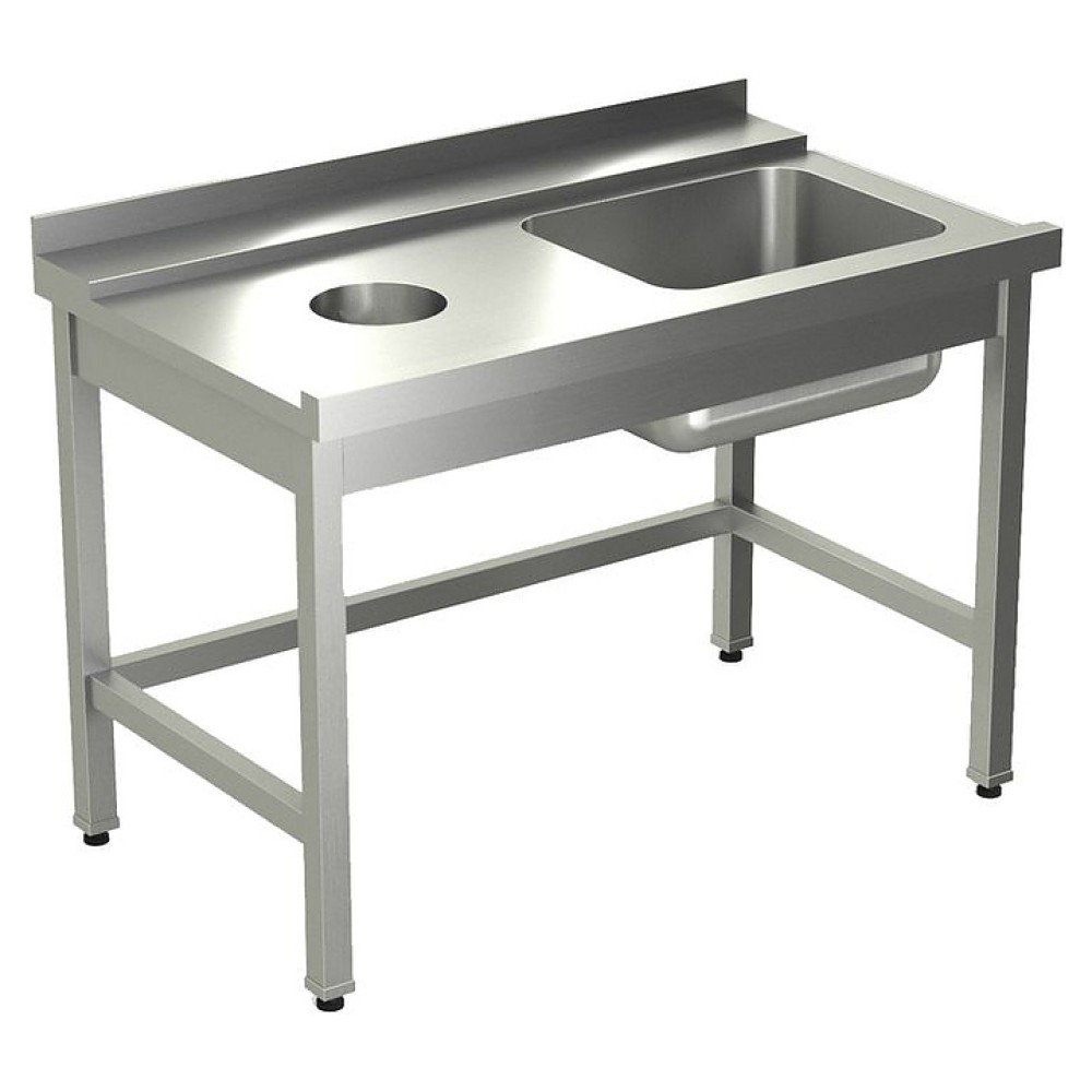 Стол KAYMAN СПМ-323/1507 используется на предприятиях общественного питания и торговли совместно с посудомоечными машинами TATRA TW.H50+DR и TW.H50+DR+DD для расстановки, временного хранения, предварительного ополаскивания и мытья грязной посуды и кухонного инвентаря. Модель оснащена разборным каркасом из трубы, раковиной, отверстием для сбора отходов, направляющими, плоским бортом и обвязкой с 3 сторон. Стол устанавливается слева от оборудования и имеет крепление на правой части. Столешница выполнена из нержавеющей стали AISI 304, каркас - из нержавеющей стали AISI 430.