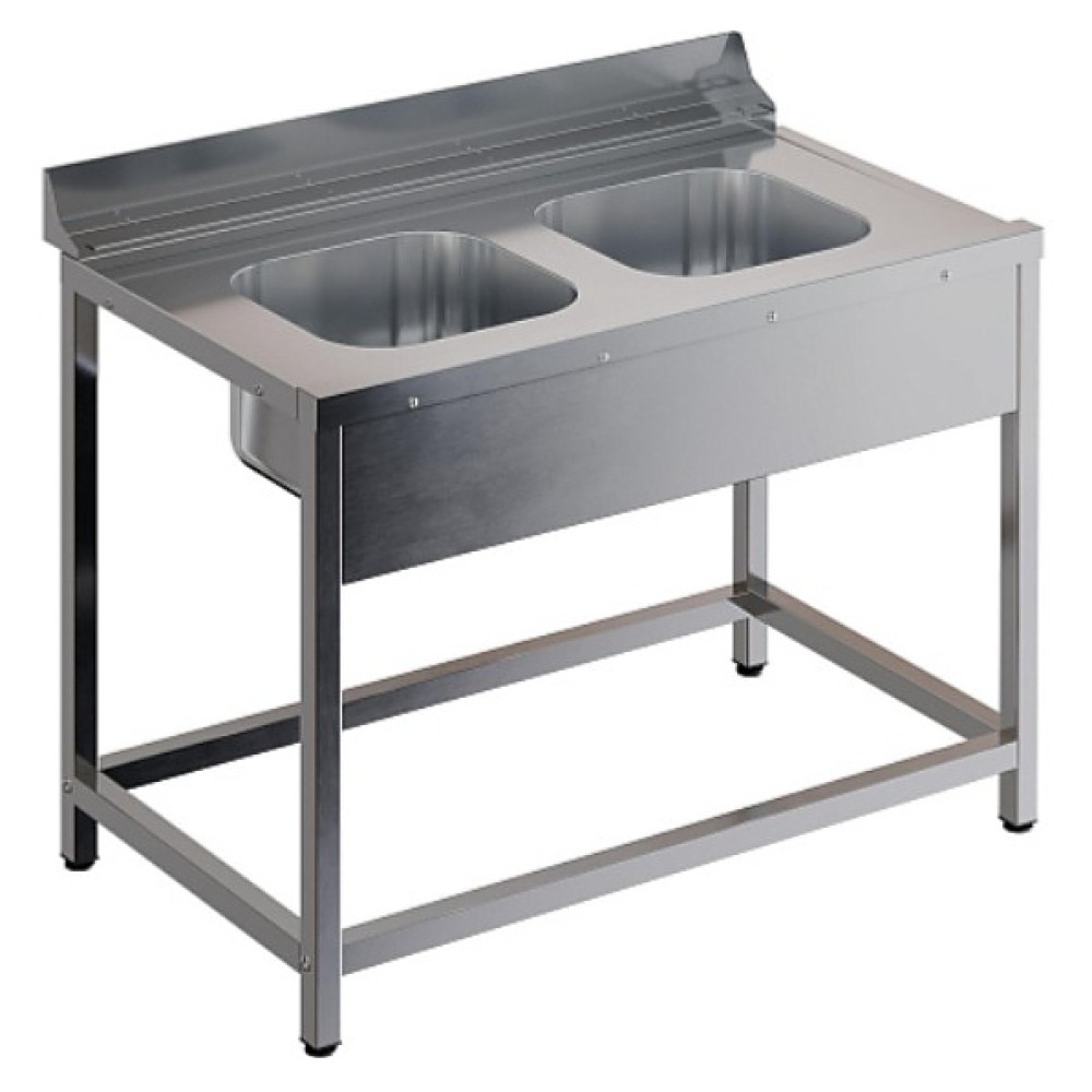 Входной стол Restoinox СВПМВЦ/2-12/7,4-БО предназначен для совместного использования с посудомоечной машиной для размещения и мойки грязной посуды на предприятиях общественного питания. Каркас выполнен из трубы 40х40 мм нержавеющей стали AISI 430, столешница и ванны - из нержавеющей стали AISI 430.
