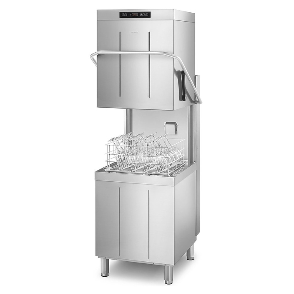 Купольная посудомоечная машина Smeg SPH503 серии Ecoline используется на предприятиях общественного питания и торговли для мойки столовых приборов, тарелок, стаканов, чашек и другой посуды. Модель оснащена электронной панелью управления и регулируемыми по высоте ножками. Корпус, моющие и ополаскивающие рукава выполнены из нержавеющей стали AISI 304.