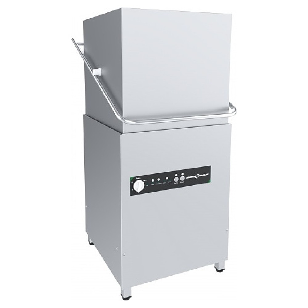 Посудомоечная машина Пищевые Технологии МП-700К-02 предназначена для мытья в кассетах тарелок, чашек и столовых приборов с применением жидких моющих и ополаскивающих средств на предприятиях общественного питания и торговли. Модель оснащена вертикальным подъемным куполом, вращающимися верхним и нижним моечными рукавами, нескользящими опорами, кабелем питания с вилкой и электромеханической панелью управления.