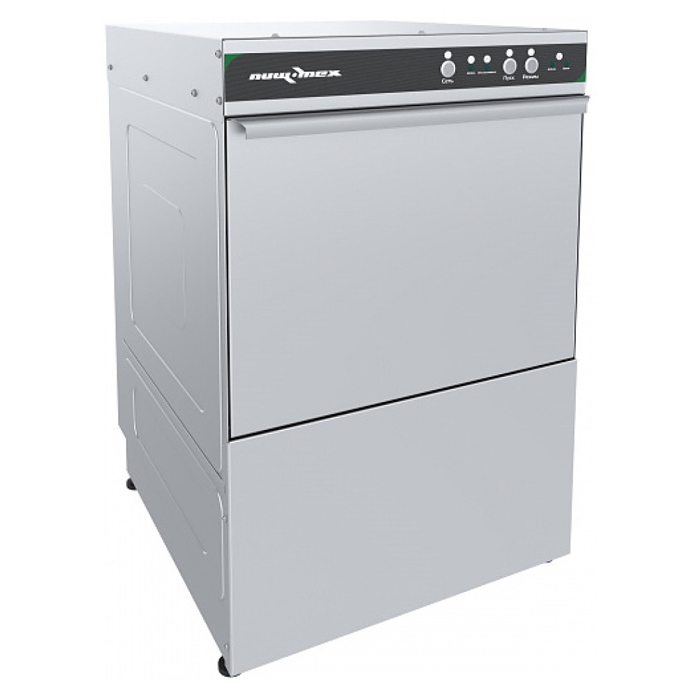 Посудомоечная машина Пищевые Технологии МП-500Ф-01 предназначена для мытья в кассетах различной столовой посуды с применением жидких моющих и ополаскивающих средств на предприятиях общественного питания и торговли. Модель оснащена фронтальной камерой с моечной ванной, бойлером, электронасосом, насосом-дозатором ополаскивающего средства, верхними и нижними моечными рукавами, откидной дверью с горизонтальной рукояткой и кнопочной панелью управления. Камера, дверь и основные детали разбрызгивателей выполнены из нержавеющей стали AISI 304, корпус - из нержавеющей стали AISI 201.