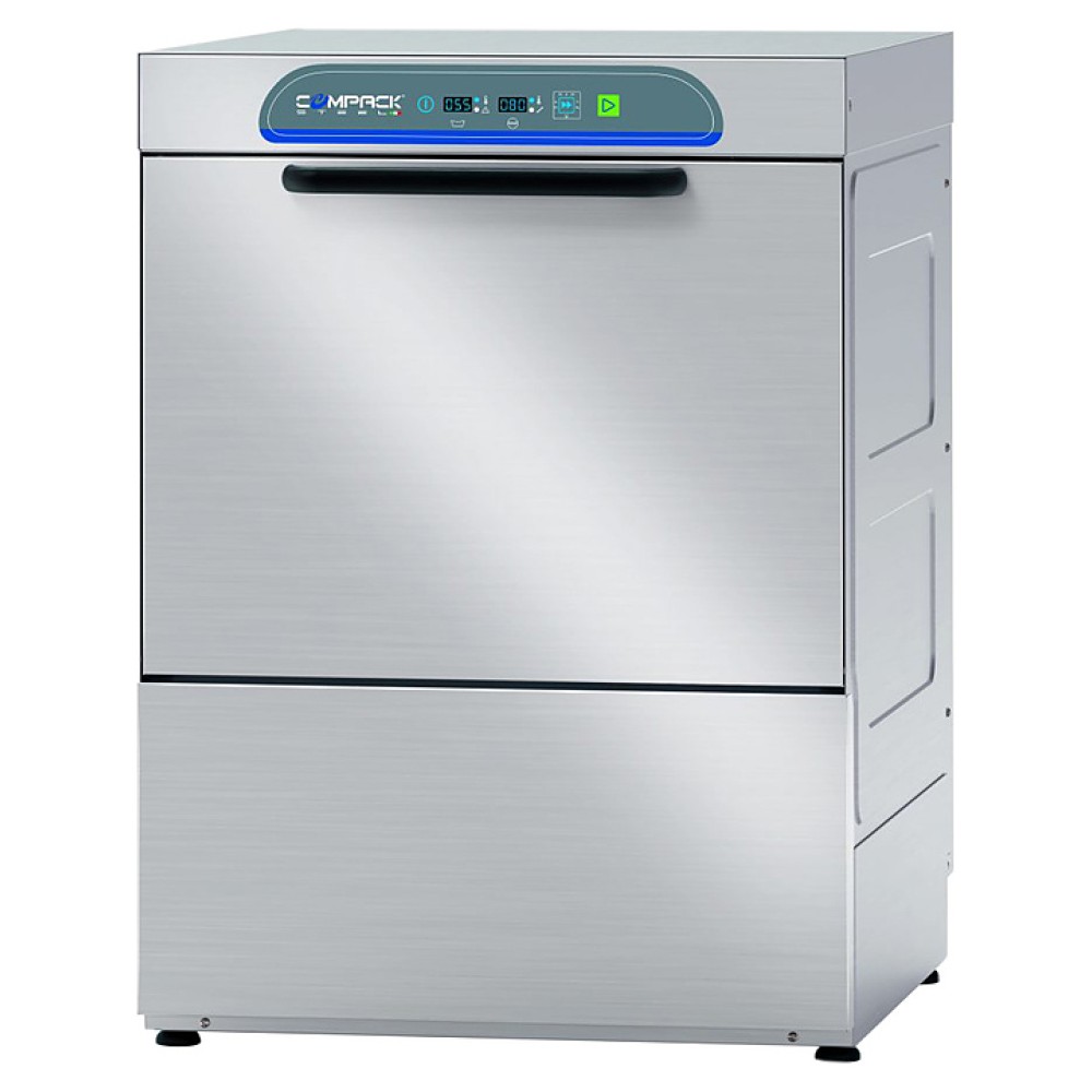 Посудомоечная машина с фронтальной загрузкой Compack X56E серии EXUS используется на предприятиях общественного питания и торговли для мойки тарелок, стаканов, чашек и столовых приборов. Модель оснащена электронной панелью управления и подключением к горячей и холодной воде. Корпус выполнен из нержавеющей стали AISI 304.