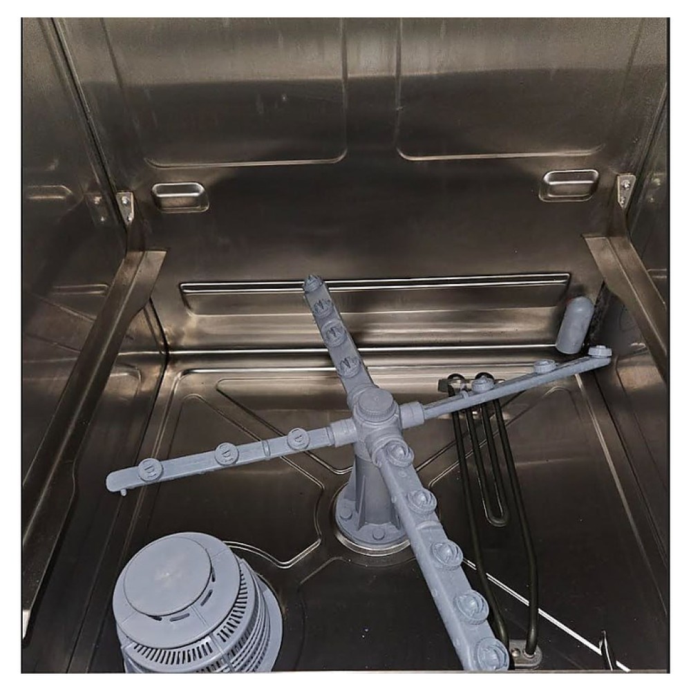 Посудомоечная машина с фронтальной загрузкой Kocateq KOMEC 510 B DD ECO используется на предприятиях общественного питания и торговли для мойки тарелок, стаканов, чашек и другой посуды. Модель оснащена электромеханической панелью управления со световыми индикаторами, мощной моющей помпой и защитным термостатом для предотвращения перегрева машины. Корпус, танк, фильтр в танке и ополаскивающие рукава выполнены из нержавеющей стали, моечные рукава - из полипропилена.