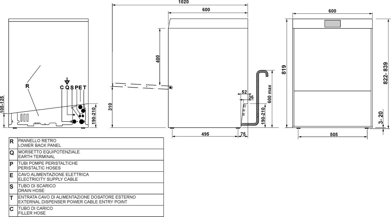 | Высота822 мм | Глубина600 мм | Ширина600 мм |