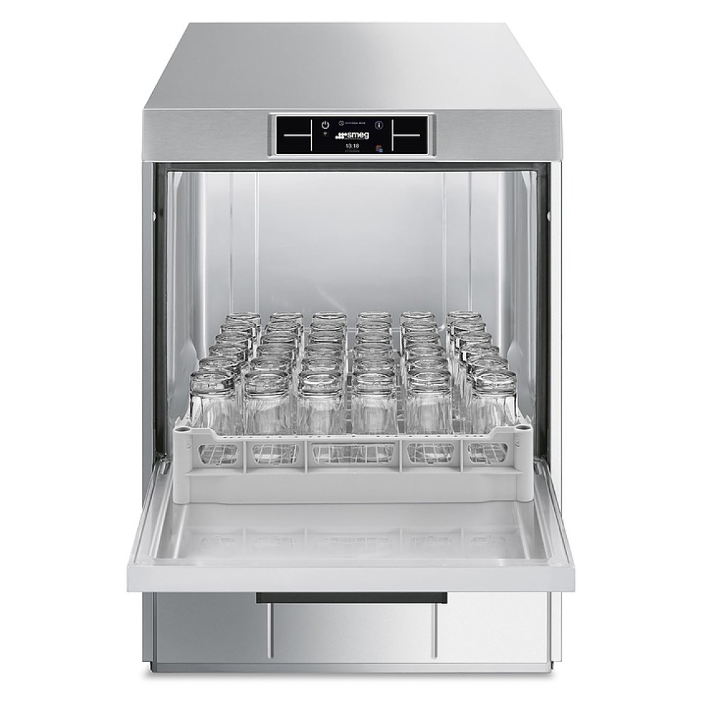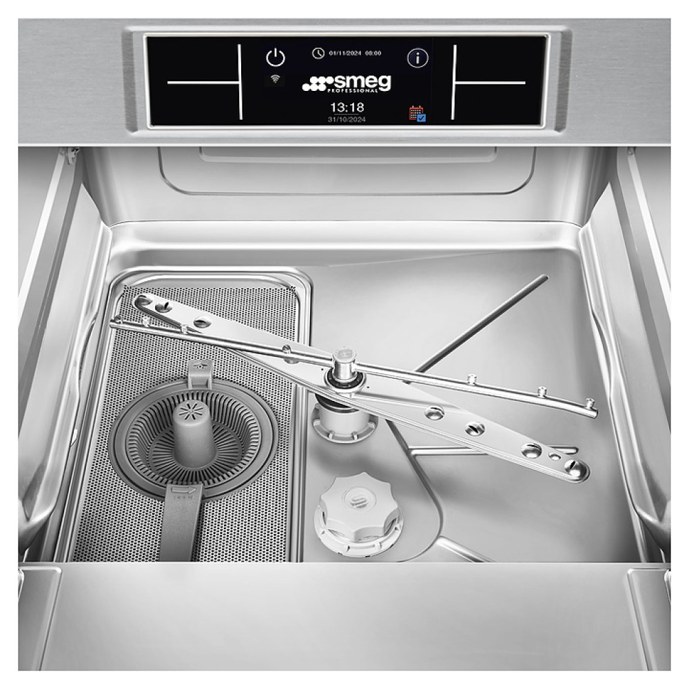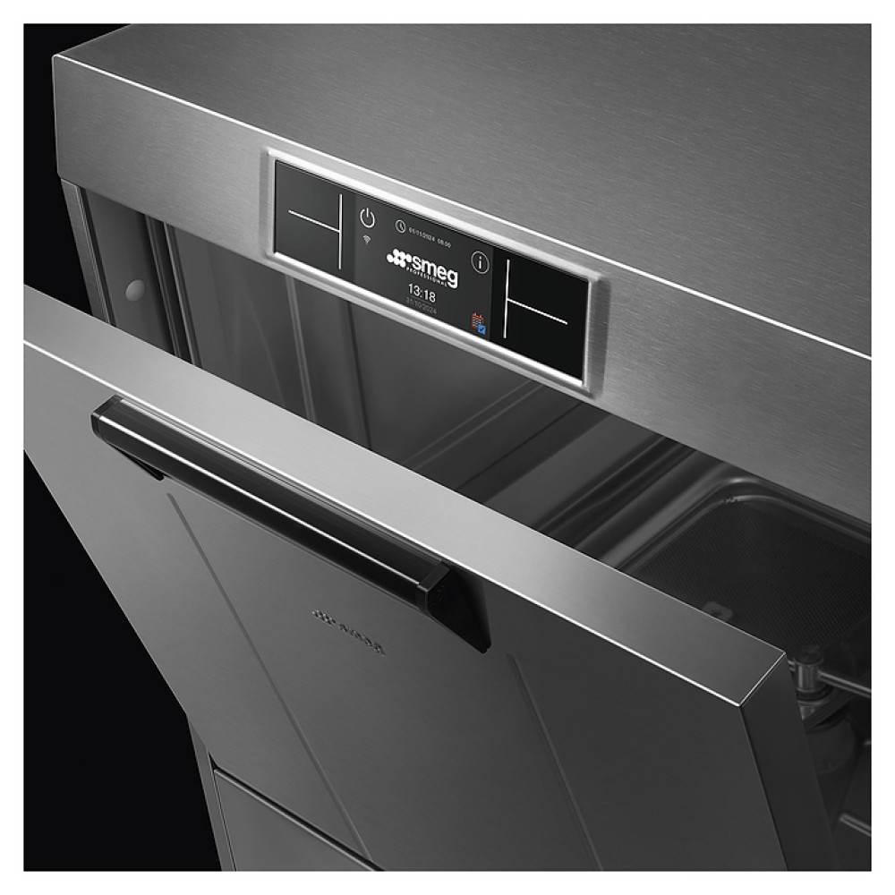 Посудомоечная машина с фронтальной загрузкой SMEG SPD525S серии Pura используется на предприятиях общественного питания и торговли для мойки столовых приборов, тарелок, стаканов, чашек и другой посуды. Модель оснащена электронной панелью управления и регулируемыми по высоте ножками. Цельнотянутый моечный бак выполнен из нержавеющей стали AISI 304, раздельные моющие и ополаскивающие рукава и фильтр моечного бака - из нержавеющей стали.
