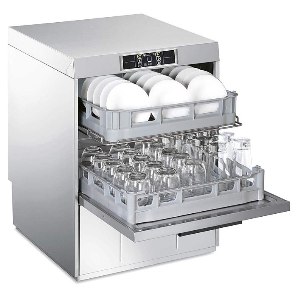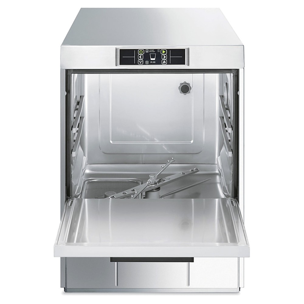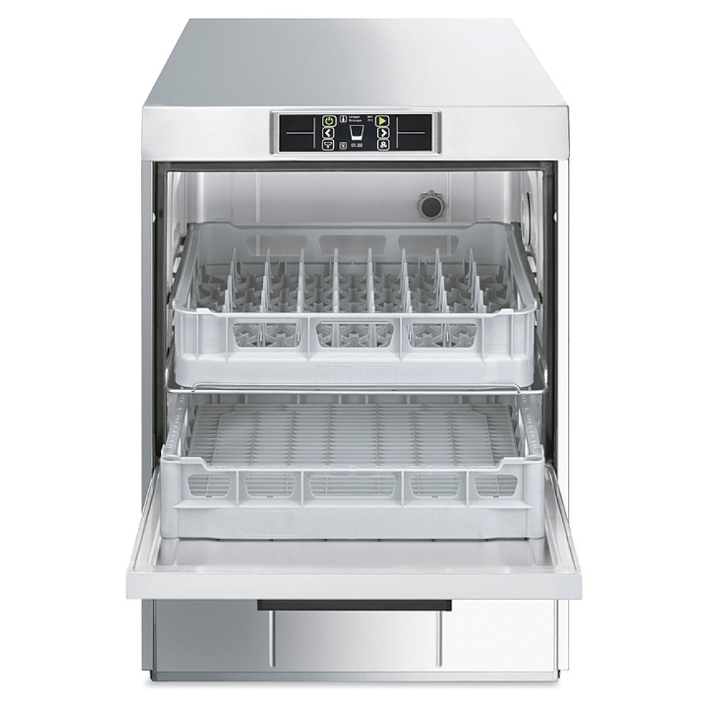 Посудомоечная машина с фронтальной загрузкой Smeg UD522D серии Topline используется на предприятиях общественного питания и торговли для мойки столовых приборов, тарелок, стаканов, чашек и другой посуды. Модель оснащена электронной панелью управления. Корпус выполнен из нержавеющей стали AISI 304.