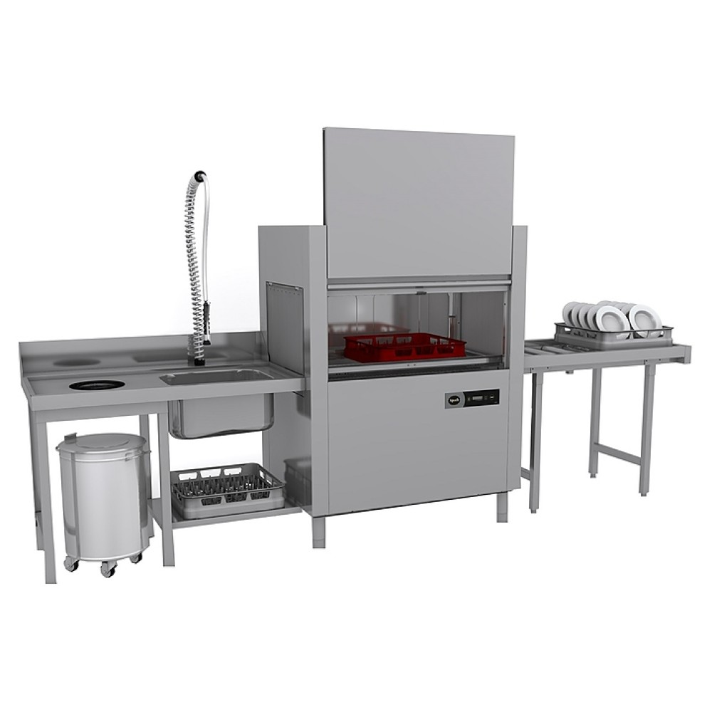 Машина посудомоечная Apach ARC100 используется на предприятиях общественного питания таких как кафе, рестораны, столовые. Аппарат предназначен для мойки стаканов, чашек, тарелок, столовых приборов и подносов. Корпус машины имеет двойные стенки, изготовленные из нержавеющей стали марки AISI 304. Цельнотянутая мойка гарантирует высокие технические характеристики. Оборудование характеризуется компактными размерами, экономным потреблением воды, электроэнергии и моющих средств.