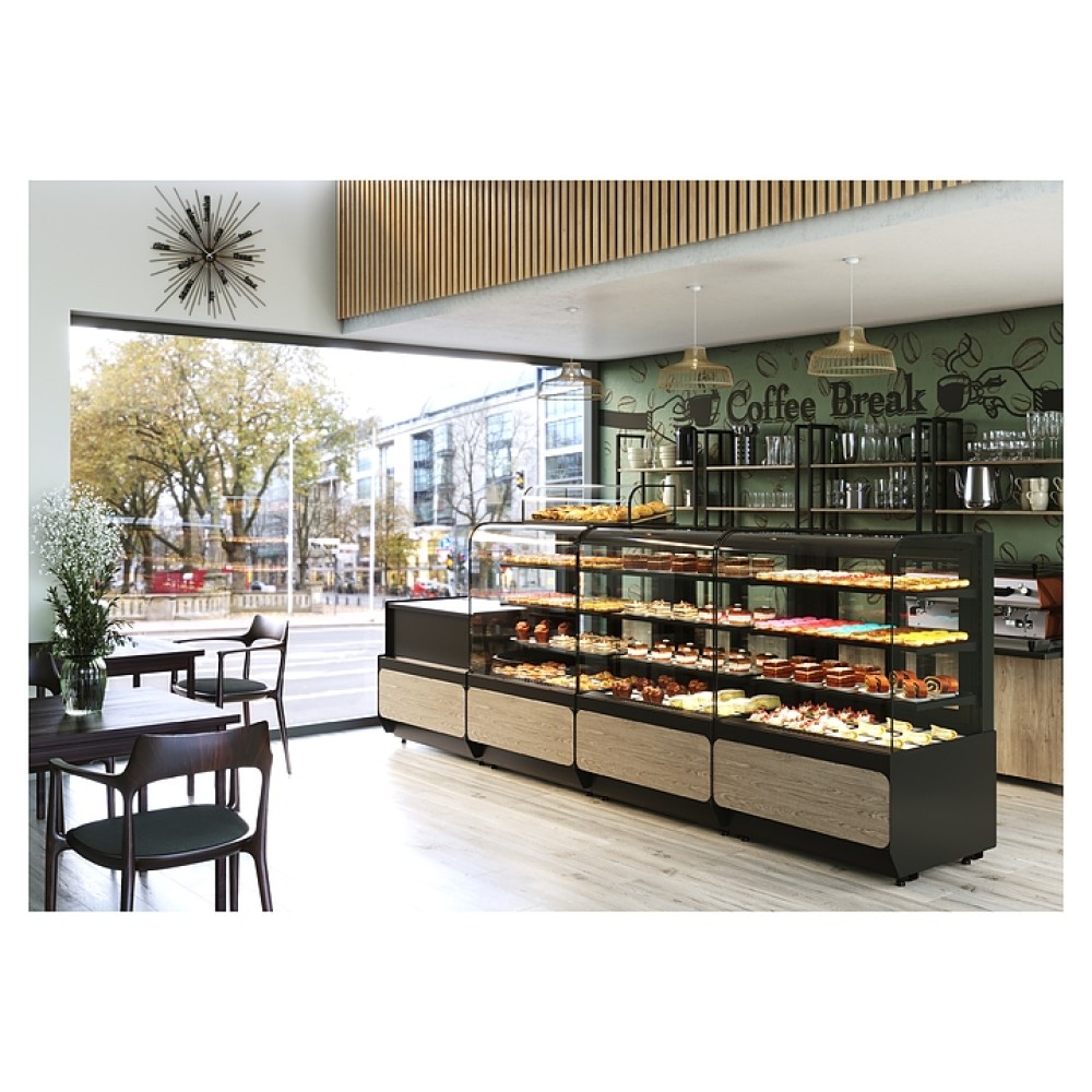 Кондитерская витрина Премьер Тироль-90 предназначена для демонстрации, охлаждения и краткосрочного хранения кондитерских изделий, закусок и десертов на предприятиях общественного питания и торговли. Модель оснащена передними откидывающимися стеклами с обдувом теплым воздухом от запотевания и 3 дополнительными охлаждаемыми стеклянными полками с энергосберегающей LED подсветкой. Базовая полка выполнена из нержавеющей стали, двери-купе - из стеклопакета.