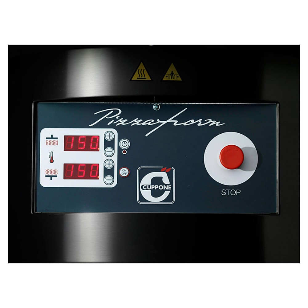 Пресс для пиццы Cuppone Pizzaform PZF/45DS используется на предприятиях общественного питания и торговли для изготовления основ для пицц. Модель оснащена 2 светодиодными дисплеями, показывающими температуру верхней и нижней пластин, таймером и функцией подсчета ударов. Под действием температуры пластин создается тонкий твердый крахмальный слой на внешней стороне теста. Корпус выполнен из нержавеющей стали, пластины - из хромированной стали.