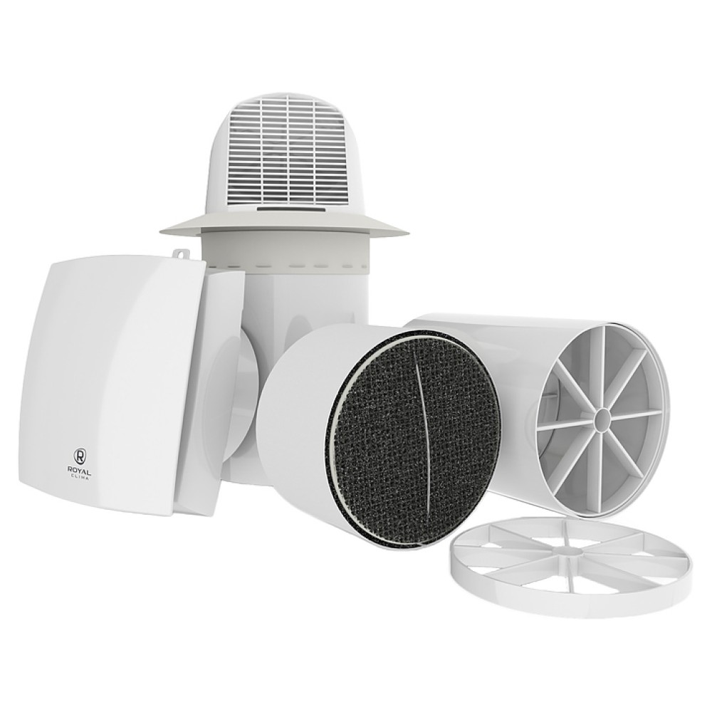 Приточно-вытяжная установка ROYAL Clima RCF-70 LUX серии FIATO предназначена для организации энергоэффективной приточно-вытяжной вентиляции в небольших жилых помещениях. Модель оснащена осевым вентилятором, воздуховодом с вентиляционным колпаком с наружной строны, воздуховыводящей решеткой с подвижными горизонтальными жалюзи, светодиодным блоком индикации и декоративной плоской фронтальной панелью выпуклой квадратной формы с внутренней стороны, пульт – кнопочной клавиатурой. Корпус пульта уплощенной овальной формы выполнен из белого пластика.