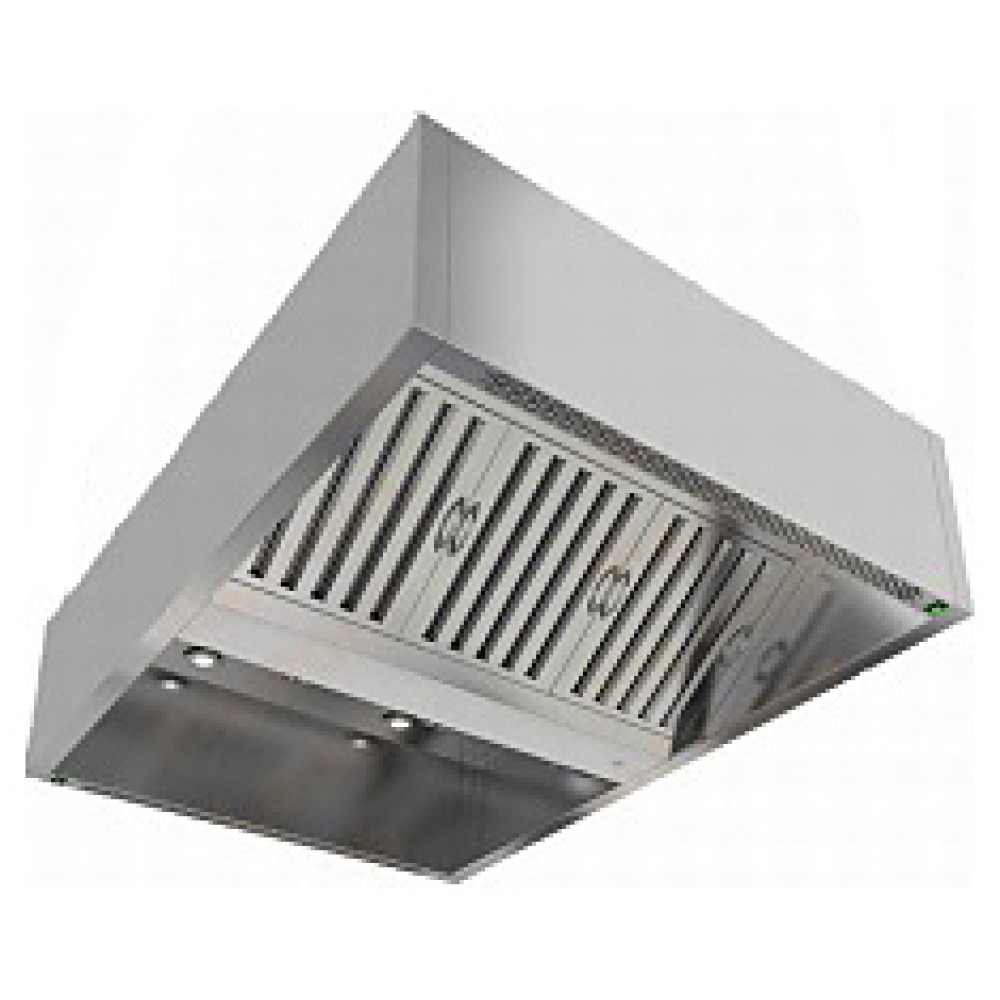 Коробчатый вытяжной зонт HICOLD ЗКВОО-1126 оснащен жировыми фильтрами "лабиринт". Дополнительно можно установить блок приточной вентиляции и подсветку.