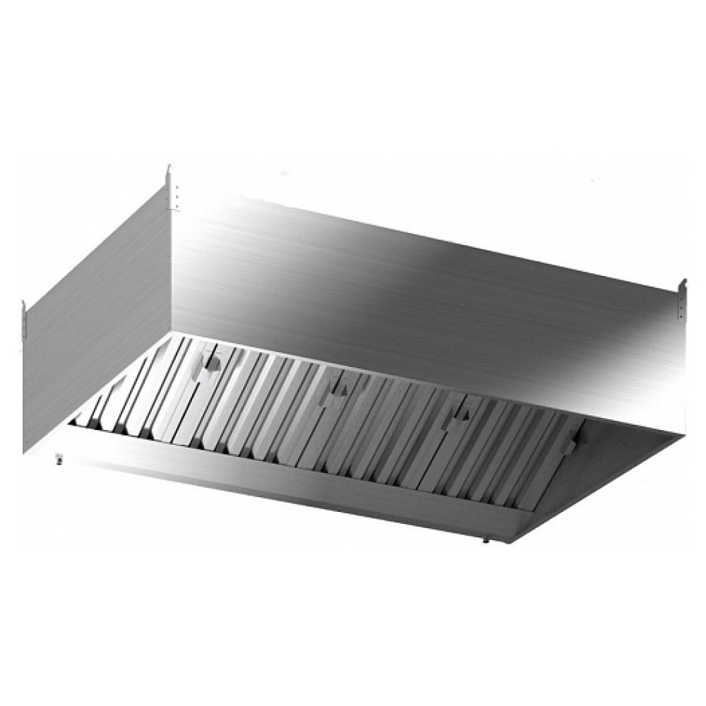 Пристенный вытяжной зонт KRONER ЗВ-2-1200/1200 предназначен для очистки воздуха от паров жира, масла и воды, а также для улавливания неприятных запахов, дыма, горячего пара и копоти на предприятиях общественного питания и торговли. Модель оснащена легкосъёмными лабиринтными фильтрами-жироуловителями и сливным каналом со съемным жиросборником. Корпус выполнен из нержавеющей стали AISI 430.