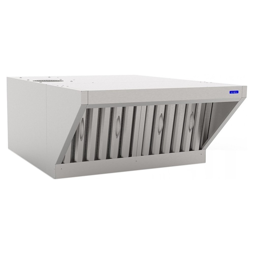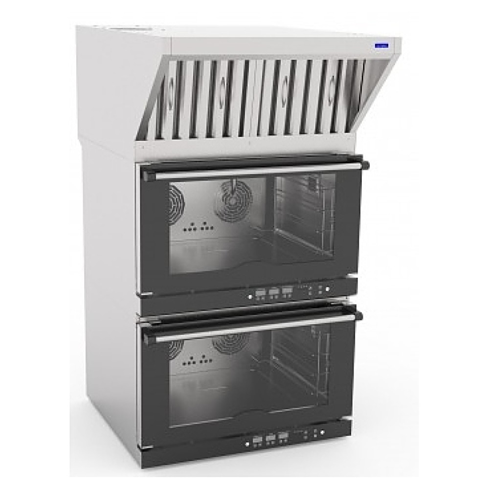 Вытяжной зонт Abat ЗВВ-4-6/4П предназначен для очистки воздуха от паров жира, масла и воды на предприятиях общественного питания и торговли. Модель состоит из 2 основных частей: каркаса теплообменника и воздухозаборника. В каркасе теплообменника установлен слот с теплообменником, угольные и лабиринтные фильтры и всасывающий вентилятор. Зонт подсоединяется к конвекционной печи с помощью кабеля питания и фиксируется с помощью двух винтов (от КЭП) к задней стенке и спереди двумя болтами к крыше конвекционной печи.
