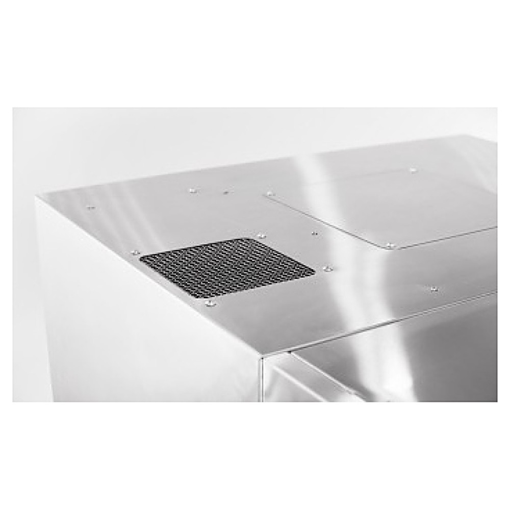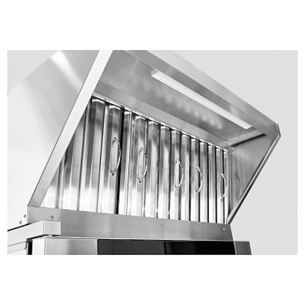 Вытяжной зонт Abat ЗВВ-4-6/4ПМ предназначен для очистки воздуха от паров жира, масла и воды на предприятиях общественного питания и торговли. Модель состоит из 2 основных частей: каркаса теплообменника и воздухозаборника. В каркасе теплообменника установлен слот с теплообменником, угольные и лабиринтные фильтры и всасывающий вентилятор. Зонт подсоединяется к конвекционной печи с помощью кабеля питания и фиксируется с помощью двух винтов (от КЭП) к задней стенке и спереди двумя болтами к крыше конвекционной печи.