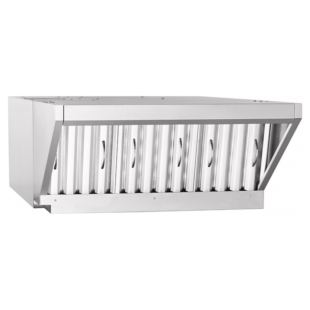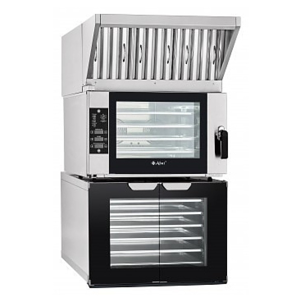Вытяжной зонт Abat ЗВВ-6-6/4П-01 предназначен для очистки воздуха от паров жира, масла и воды на предприятиях общественного питания и торговли. Модель состоит из 2 основных частей: каркаса теплообменника и воздухозаборника. В каркасе теплообменника установлен слот с теплообменником, угольные и лабиринтные фильтры и всасывающий вентилятор. Зонт подсоединяется к конвекционной печи с помощью кабеля питания и фиксируется с помощью двух винтов (от КЭП) к задней стенке и спереди двумя болтами к крыше конвекционной печи.