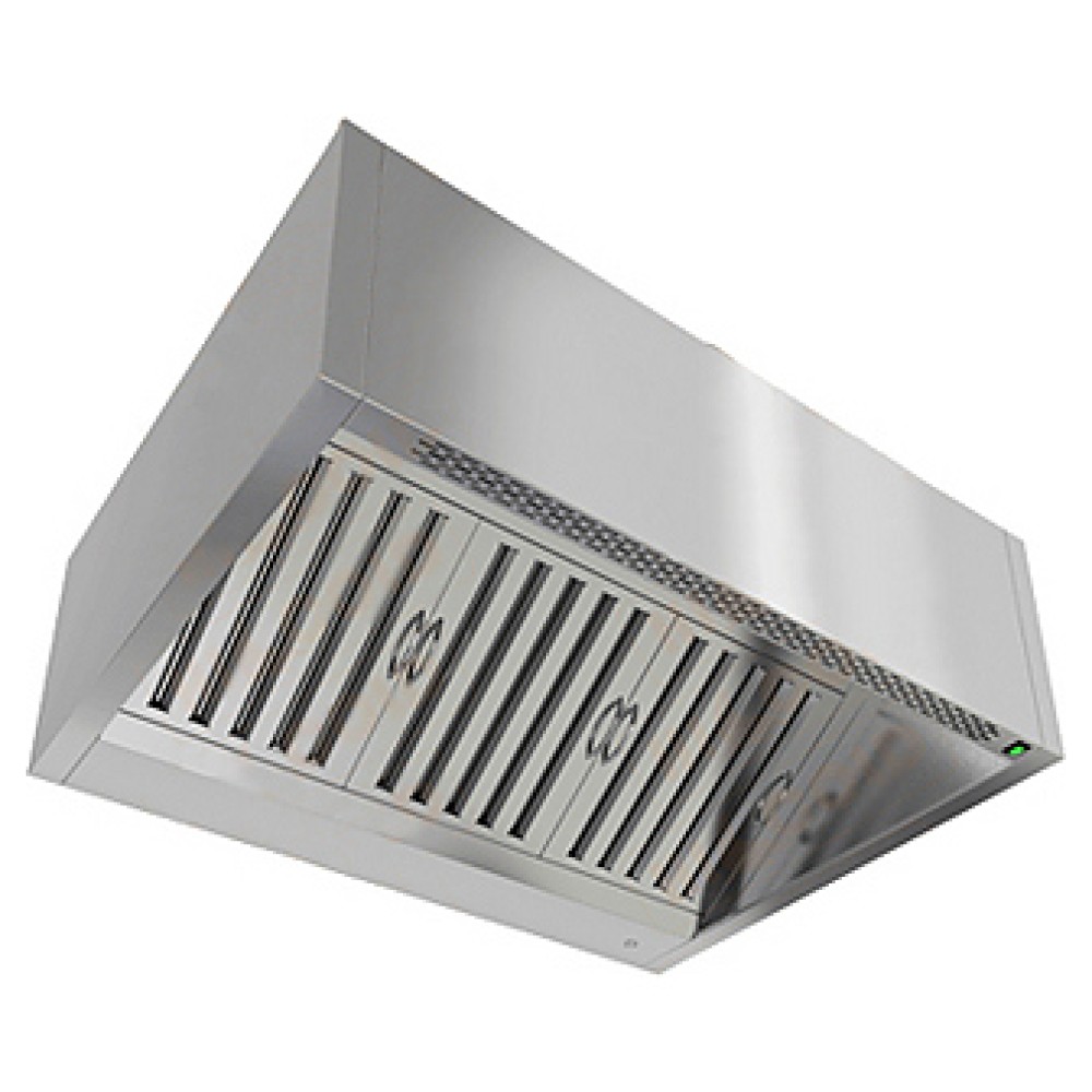 Коробчатый вытяжной зонт HICOLD ЗКВПО-1213 оснащен жировыми фильтрами "лабиринт". Дополнительно можно установить блок приточной вентиляции и подсветку.