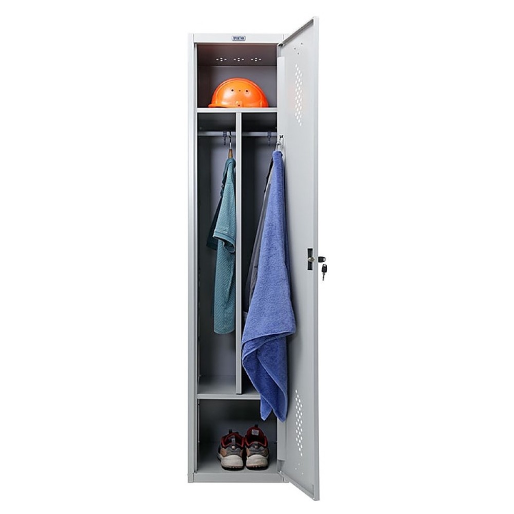 Шкаф для одежды ПРОМЕТ Практик Стандарт LS-11-40D используется на предприятиях общественного питания и торговли. Модель оснащена секцией, резделенной на 2 части, 2 полками и замком. Корпус выполнен из стали, окрашенной методом порошкового напыления.