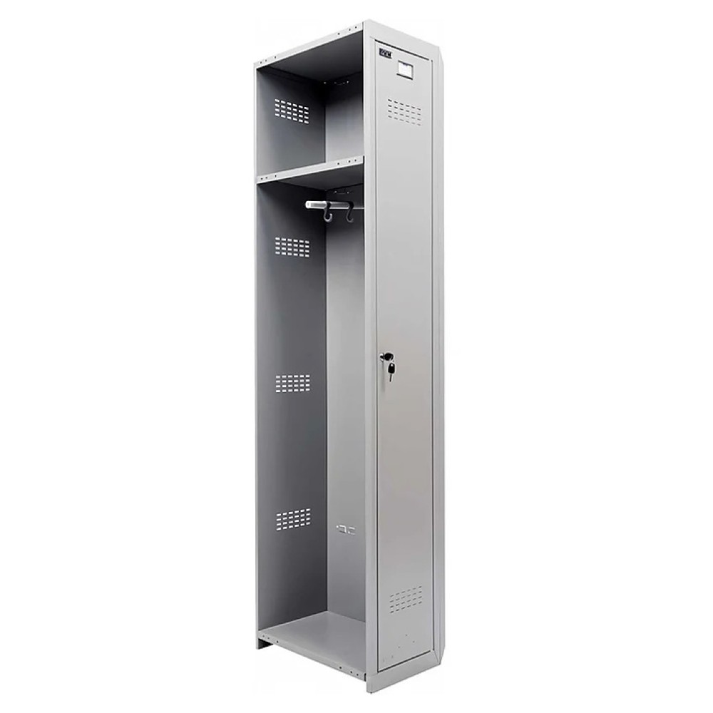 Шкаф для одежды ПРОМЕТ Практик Усиленный ML-01-30 используется на предприятиях общественного питания и торговли, а также в производственных помещениях для хранения одежды и личных вещей персонала. Модель оснащена запираемой на ключ распашной дверцей, полкой, перекладиной и крючками. Корпус выполнен из стали, окрашенной методом порошкового напыления.