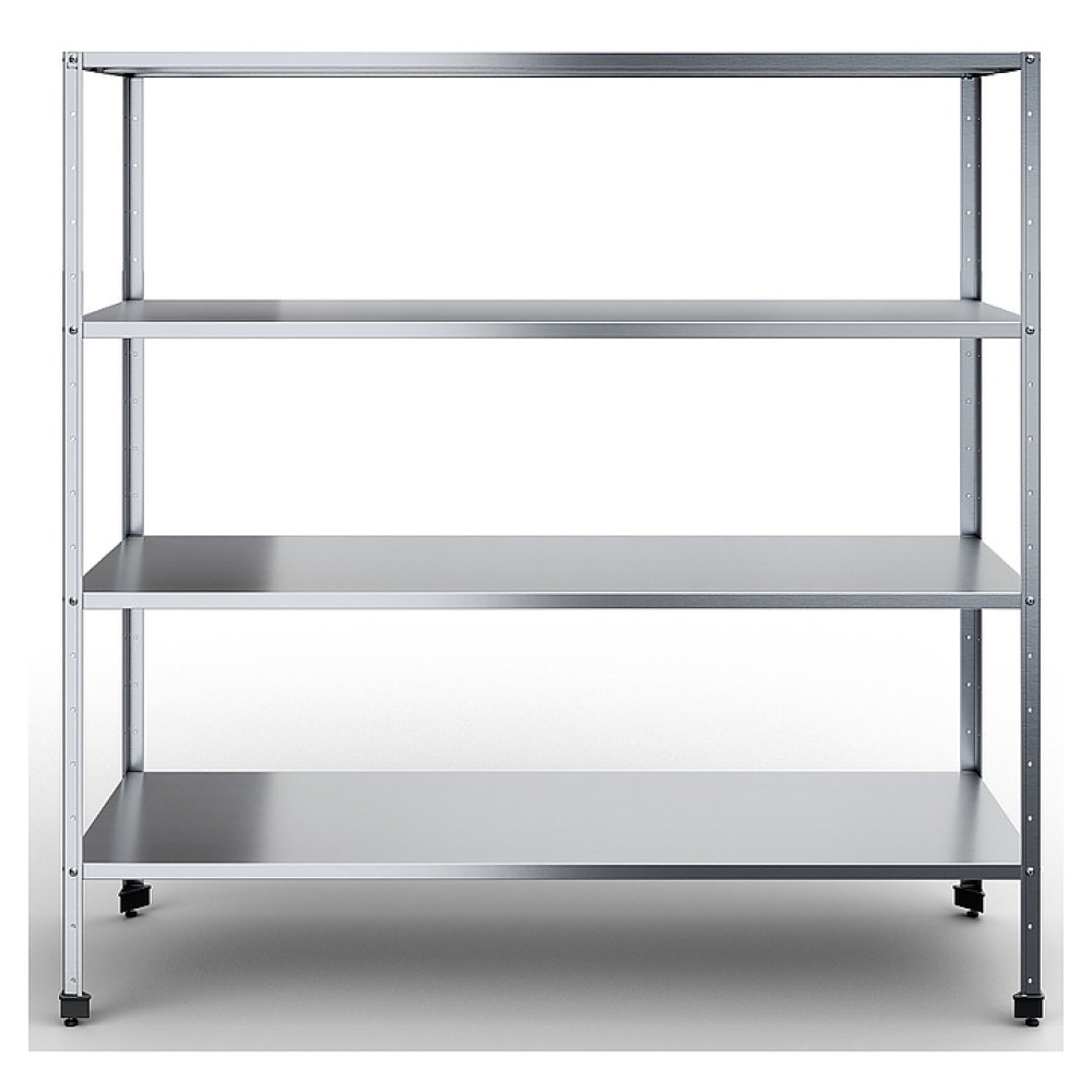 Кухонный стеллаж Rada СКСУЧ-18/7/18-4С предназначен для хранения посуды, инвентаря и сухих продуктов на предприятиях общественного питания и торговли. Разборный каркас выполнен из уголка 40x40 мм нержавеющей стали AISI 430, полки - из нержавеющей стали AISI 430.