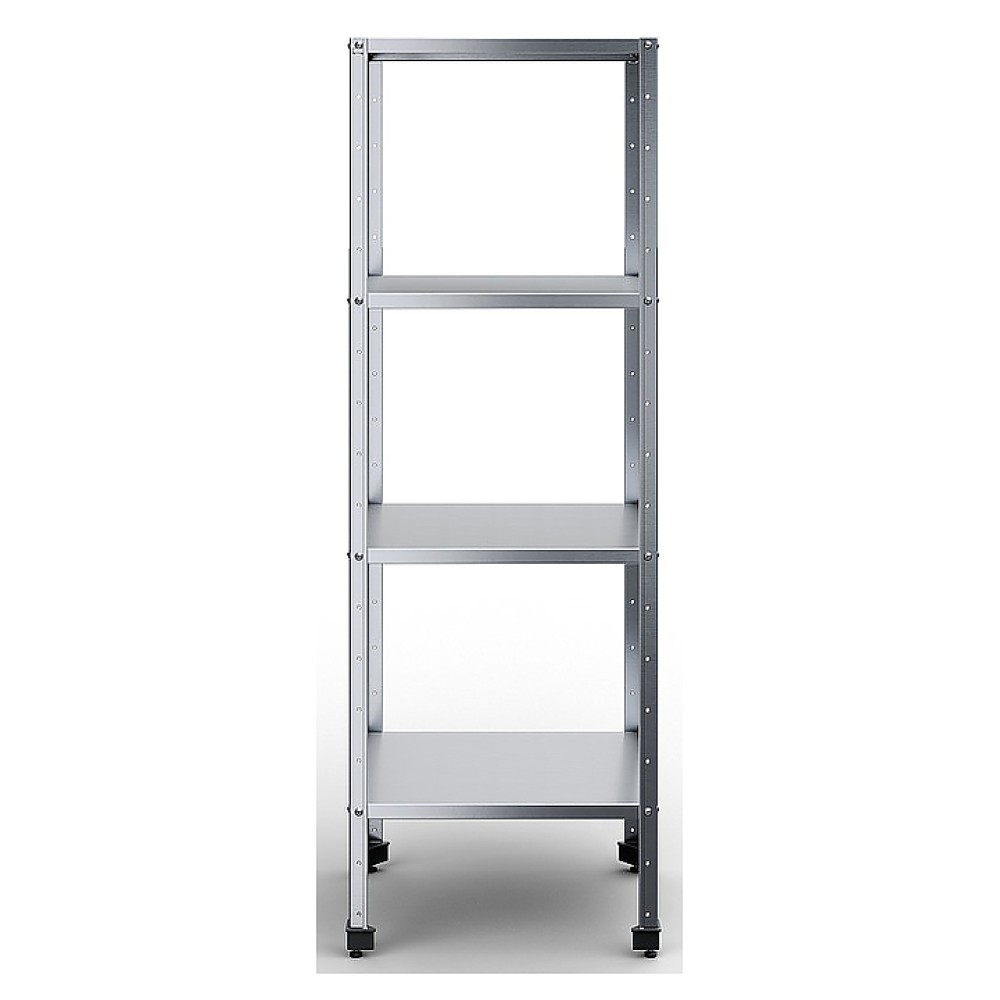 Кухонный стеллаж Rada СКСУЧ-7/6/18-4С предназначен для хранения посуды, инвентаря и сухих продуктов на предприятиях общественного питания и торговли. Разборный каркас выполнен из уголка 40x40 мм нержавеющей стали AISI 430, полки - из нержавеющей стали AISI 430.