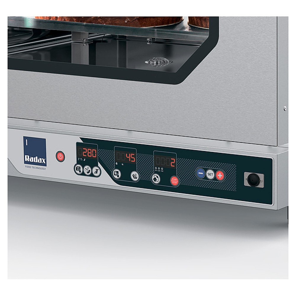 Высокоскоростная печь Radax VENIX SPZLR0GER00 используется на предприятиях общественного питания и торговли для приготовления порционных блюд на пару. Модель оснащена цветным 2,4-дюймовым ЖК-дисплеем с цифровым управлением и 100 программами. Камера выполнена из нержавеющей стали AISI 304.