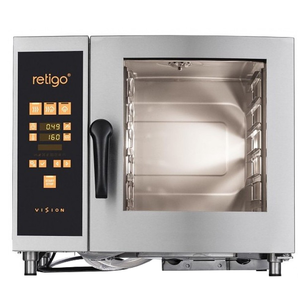 Пароконвектомат Retigo O623i серии Orange Vision предназначен для обжаривания, приготовления на пару, бланширования, запекания и других видов тепловой обработки продуктов на фабриках-кухнях, предприятиях общественного питания и торговли. Оборудование заменяет сразу несколько видов приборов: плиту, конвекционную печь, жарочный шкаф, духовку, опрокидывающуюся сковороду, пищеварочный котел и фритюрницу. Приготовленные в пароконвектомате блюда сохраняют все полезные вещества. Модель оснащена сенсорной панелью управления и цифровым дисплеем.