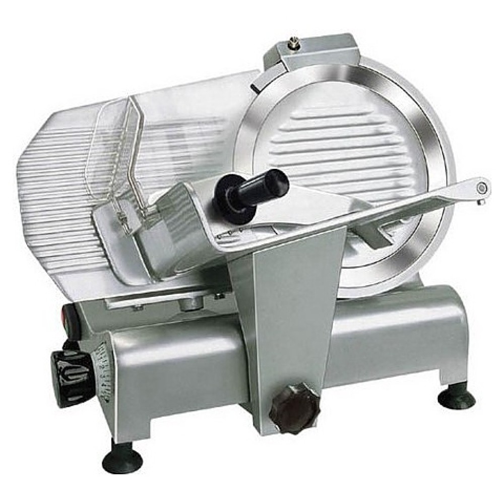 Слайсер RGV LUSSO 300 S-L (тефлон) предназначен для использования на предприятиях общественного питания, торговли, а также в производственных цехах, деятельность которых связана с выпуском гастрономических товаров, для нарезки мяса, сыра, колбасных изделий и других продуктов питания на ровные и равные ломтики. Литая база выполнена из лакированного алюминия, защитное крыло для диска, устройство подачи продукта и перегородки - из анодированного алюминия.