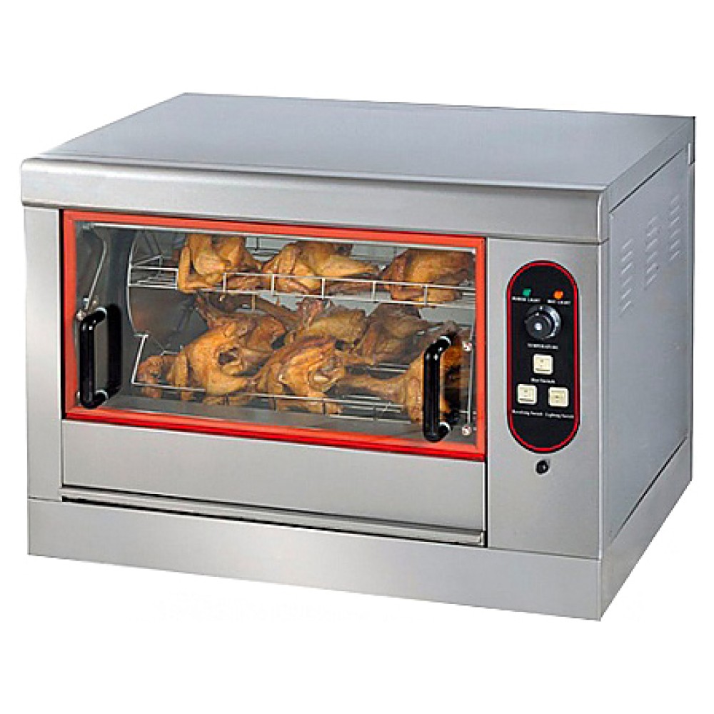 Электрический карусельный гриль ROAL EB-266 используется на предприятиях общественного питания и торговли для равномерного запекания куриных тушек, окорочков, грудок и крылышек. Модель оснащена терморегулятором, 4 корзинками, чашей для масла и 4 колесами. Дверца с жаропрочным стеклом и внутренняя подсветка позволяют контролировать процесс приготовления. Корпус выполнен из нержавеющей стали.