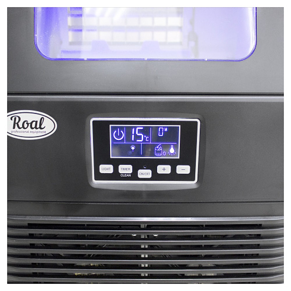 Льдогенератор ROAL HZB-40 F/AB предназначен для приготовления кубикового льда, используемого для охлаждения различных напитков на предприятиях общественного питания и торговли. Устройство выдает лед в виде разделенной на ячейки цельной пластины, которую можно легко расколоть на отдельные кубики. Модель оснащена компрессорным агрегатом, откидной дверцей, панелью управления с кнопочной клавиатурой и жидкокристаллическим дисплеем индикации. Корпус выполнен из нержавеющей стали и пластика.