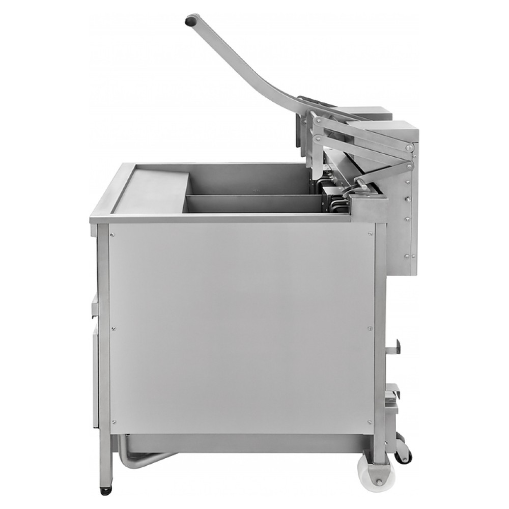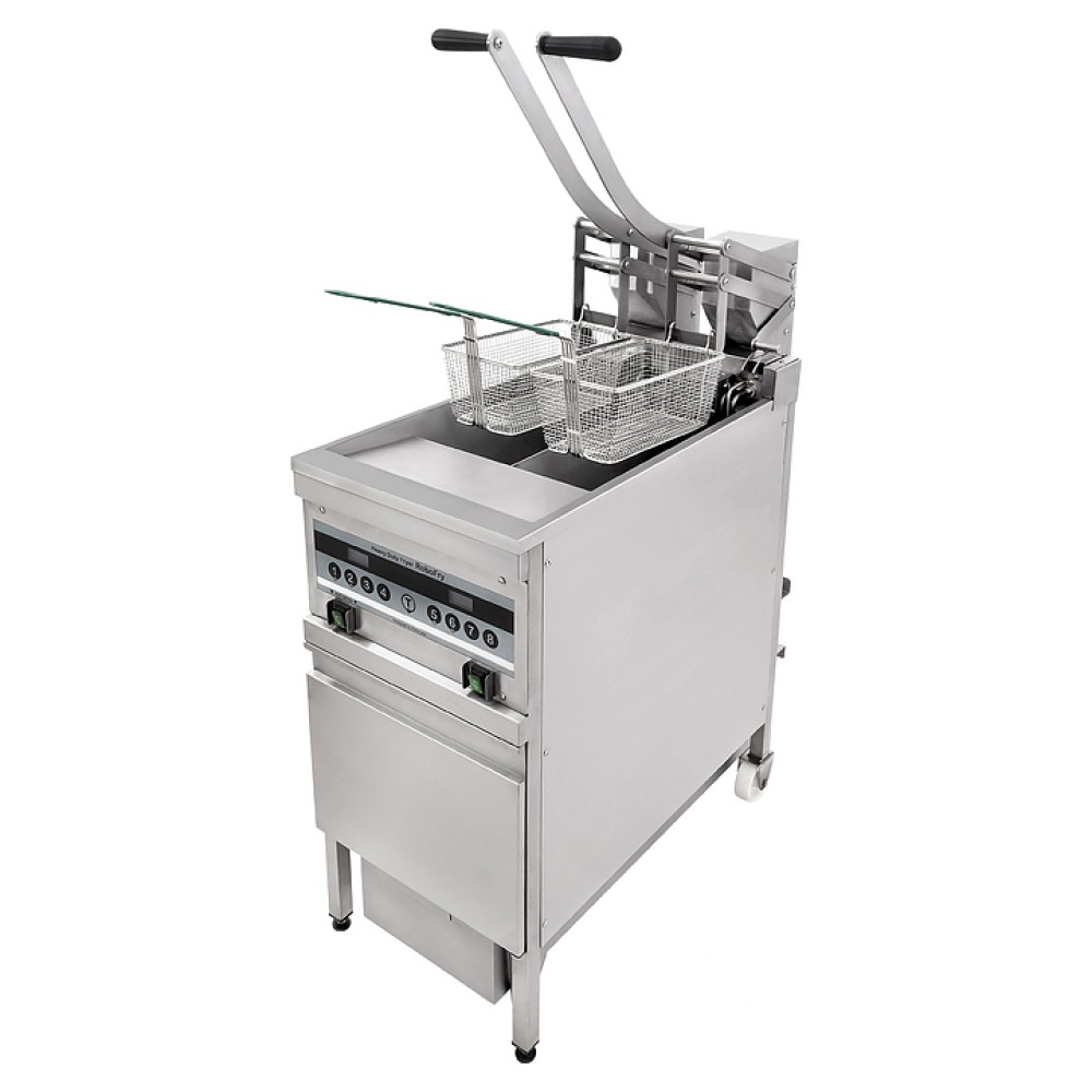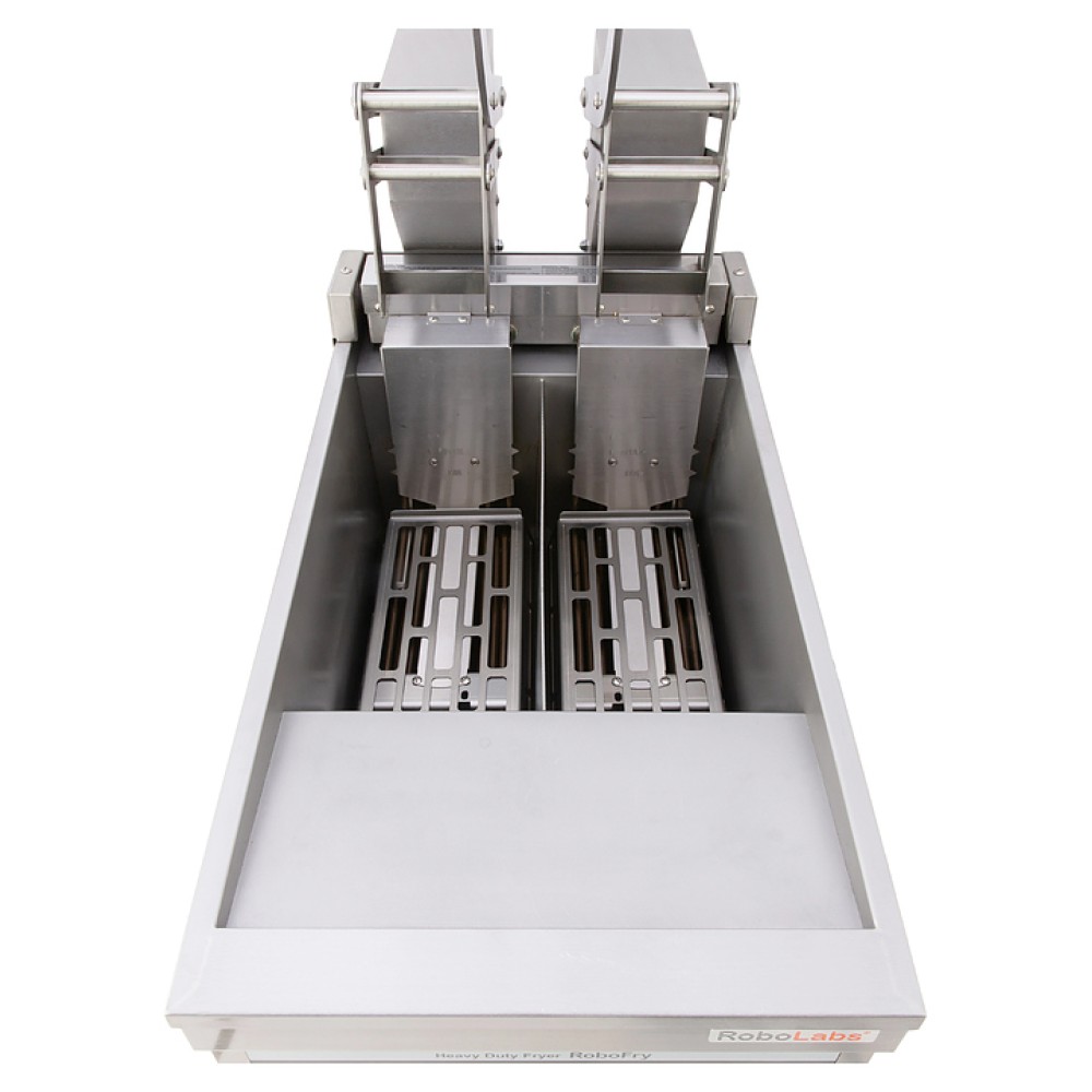 Фритюрница RoboLabs RoboFry ARF Deluxe предназначена для приготовления различных продуктов в большом количестве масла на предприятиях общественного питания и торговли. Модель оснащена электронной программируемой панелью управления, ручным механизмом поднятия ТЭНов, системой фильтрации масла и закрытой подставкой. Конструкция изготовлена из нержавеющей стали AISI 430.