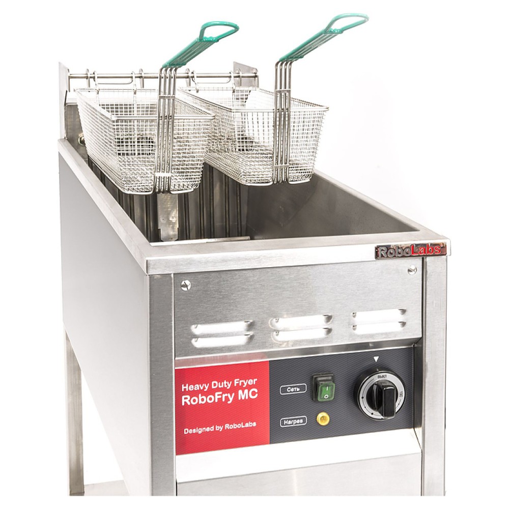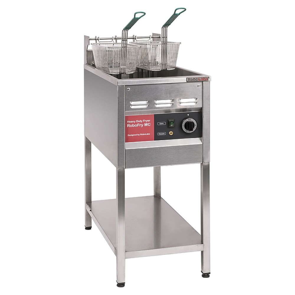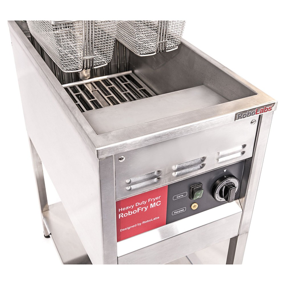 Фритюрница RoboLabs RoboFry EF предназначена для приготовления различных продуктов в большом количестве масла на предприятиях общественного питания и торговли. Модель установлена на открытом стенде с 1 полкой и оснащена электро-механической системой управления с регулятором температуры.