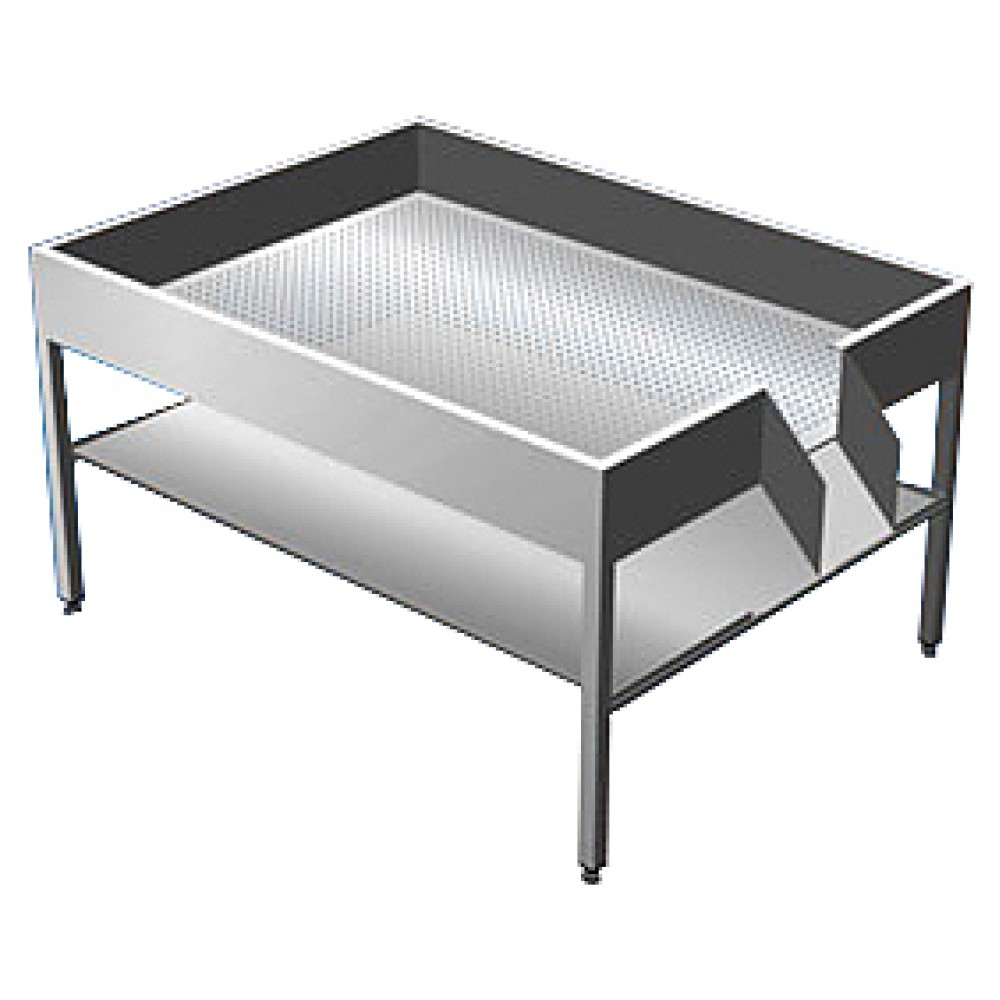 Стол RoboLabs СКрм-01 используется в кинотеатрах и развлекательных центрах совместно с карамелизатором SugarLips 20 для обработки готового попкорна карамельной смесью или другими вкусовыми добавками. Модель оснащена перфорацией по всей площади дна, ребрами жесткости и полкой.