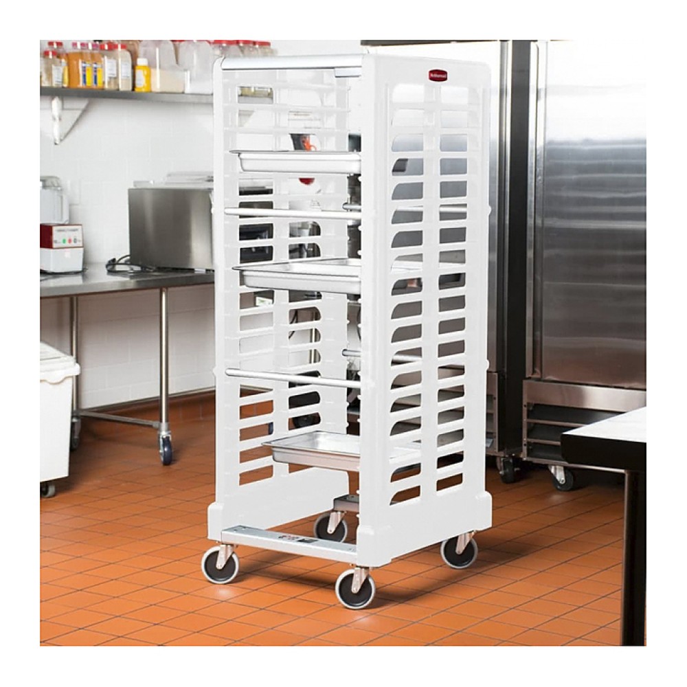 Тележка-шпилька Rubbermaid FG332400OWHT предназначена для хранения и транспортировки противней, подносов и гастроемкостей на предприятиях пищевой промышленности, общественного питания и торговли. Изделие оснащено не оставляющими следов колесами, 2 из которых поворотные. Корпус выполнен из жаропрочного конструкционного пластика.
