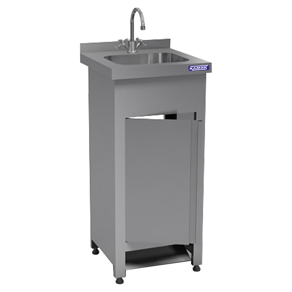 Рукомойник КАМИК Рн-4040сн используется на предприятиях общественного питания и торговли. Модель оборудована педальным механизмом и устройством регулировки с обратными клапанами. Сварной каркас и столешница выполнены из нержавеющей стали AISI 430 толщиной 1 мм, цельнотянутая емкость - из нержавеющей стали AISI 304.