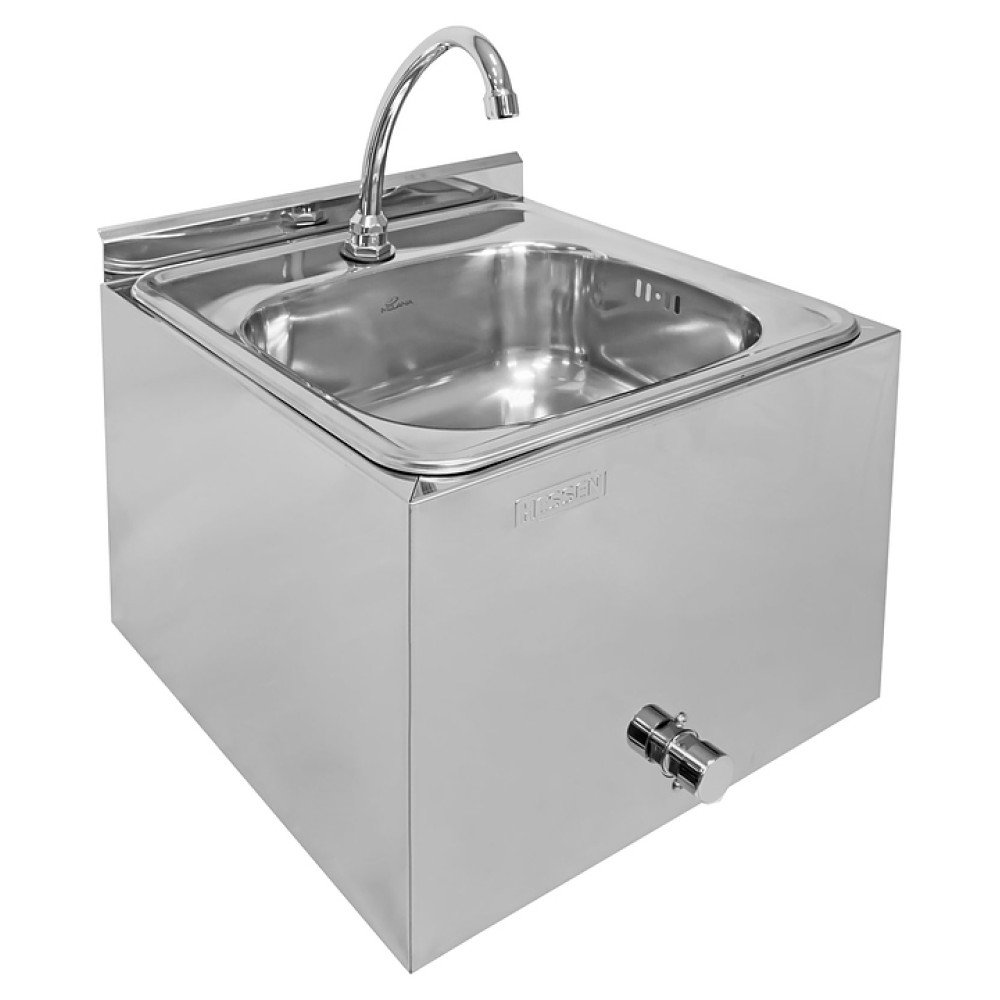 Настенный рукомойник Hessen РНБ 4*3 используется на предприятиях общественного питания и торговли, а также в производственных цехах для мытья рук персонала. Модель оснащена отверстием под смеситель и крепится на стену, что позволяет установить его на удобной для персонала высоте. Каркас выполнен из высококачественной нержавеющей стали AISI 430.