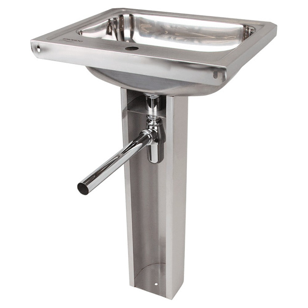 Напольный рукомойник Oceanus 3-015.2 предназначен для мытья рук на предприятиях общественного питания и торговли. Модель оснащена раковиной прямоугольной формы со сглаженными углами, невысоким фартуком, отверстием под смеситель и закрытым пьедесталом. Изделие выполнено из высококачественной нержавеющей стали марки AISI 304 серебристого оттенка с матовой поверхностью.