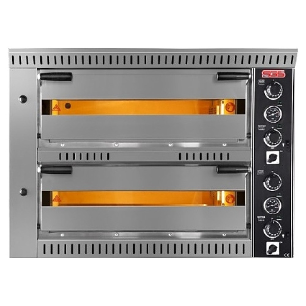 Печь для пиццы SGS PO / 7070 DE используется на предприятиях общественного питания и торговли для выпечки пиццы и других хлебобулочных изделий. Модель оснащена 2 рабочими камерами с откидными дверьми, горизонтальными рукоятками с термоизолированной поверхностью и электромеханическими панелями управления. Корпус выполнен из листовой нержавеющей стали, поды – из огнеупорного камня (Италия).