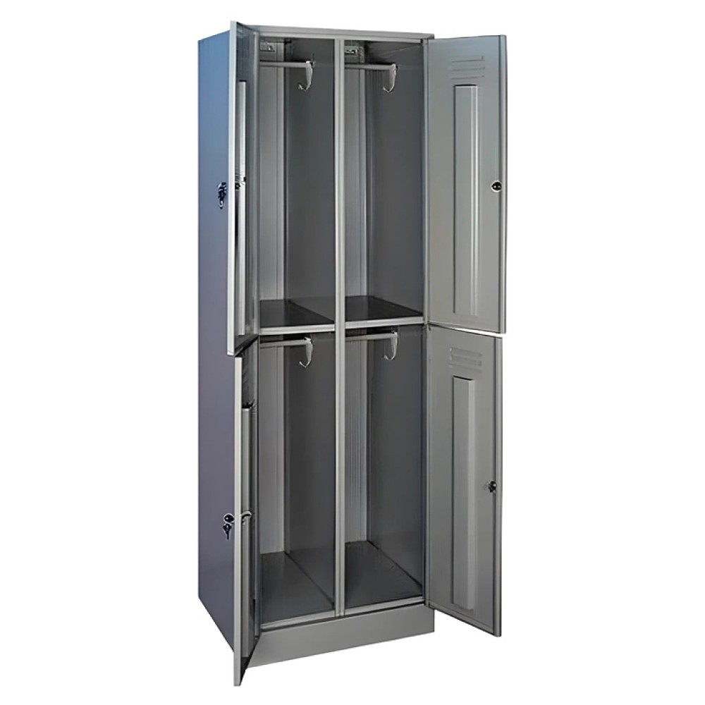 Шкаф для одежды ITERMA ШО-24 используется для хранения одежды, обуви и личных вещей на предприятиях общественного питания и торговли. Оснащен 4 секциями с перекладинами и с замками для дверей. Материал корпуса - сталь с полимерным покрытием.