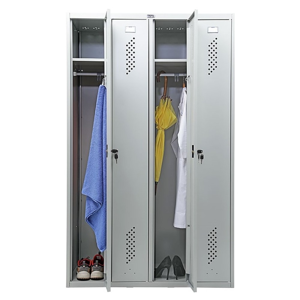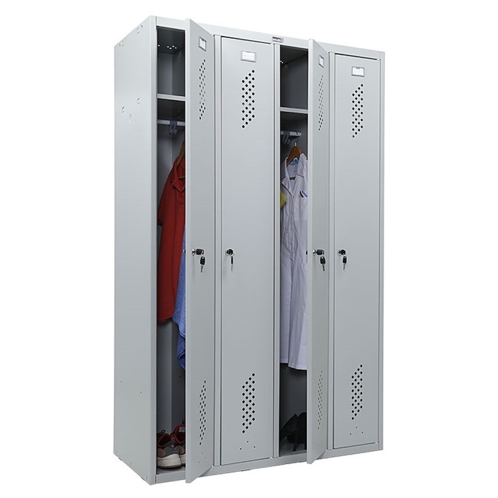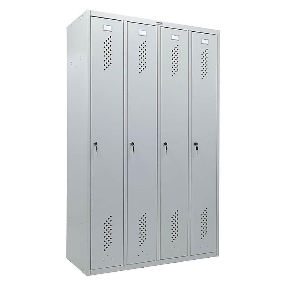 Шкаф для одежды ПРОМЕТ Практик Стандарт LS-41 используется на предприятиях общественного питания и торговли. Модель оснащена 4 секциями, полками и замками. Корпус выполнен из стали, окрашенной методом порошкового напыления.