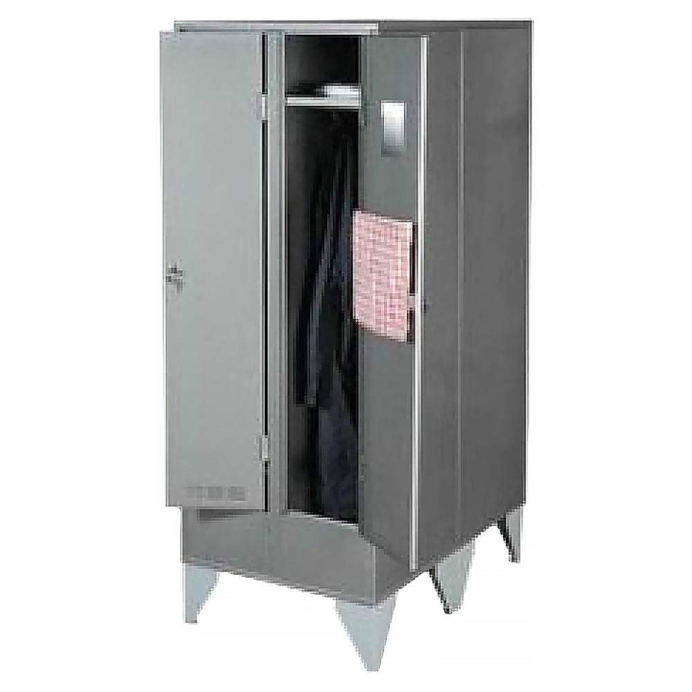 Шкаф для одежды Проммаш 2МД-33,2 предназначен для хранения одежды, обуви и личных вещей персонала на предприятиях общественного питания и торговли, в офисах и производственных помещениях. Модель имеет разборную конструкцию, оснащена 2 сдвоенными секциями, которые соединены между собой задними стенками, с запираемыми дверцами с вентиляционными отверстиями. Корпус и дверцы выполнены из штампованной листовой углеродистой стали, окрашенной порошковой краской.