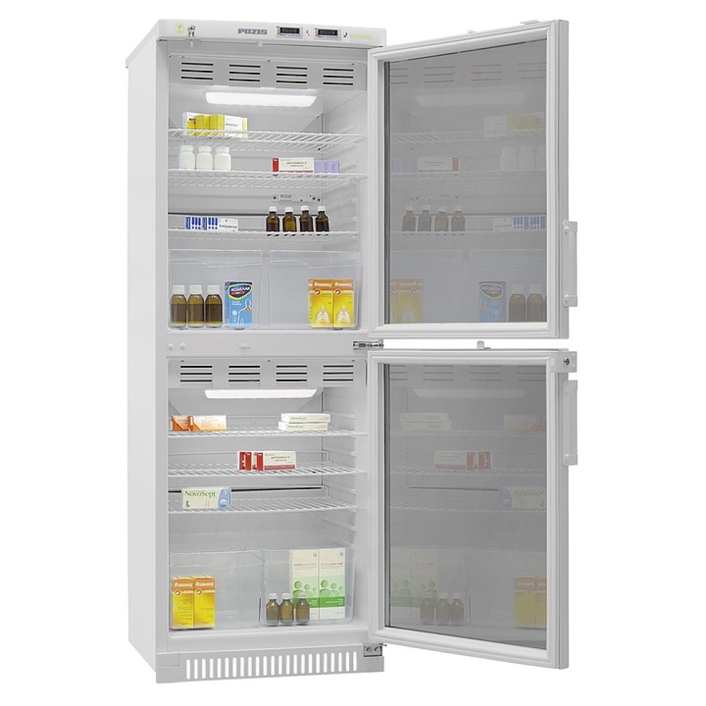 Фармацевтический холодильник POZIS ХФД-280-1 используется в аптеках, больницах и клиниках для хранения лекарственных препаратов, вакцин, реагентов и биологических препаратов. Двухкамерная модель оснащена 2 тонированными стеклянными дверями с ручками и замками и 3 регулируемыми по высоте полками с 2 пластиковыми контейнерами в каждой камере. Для удобства пользования дисплеи, отображающие температуру, располагаются над дверью верхней камеры в зоне постоянной видимости. Теплоизоляция корпуса выполнена из пенополиуретана.
