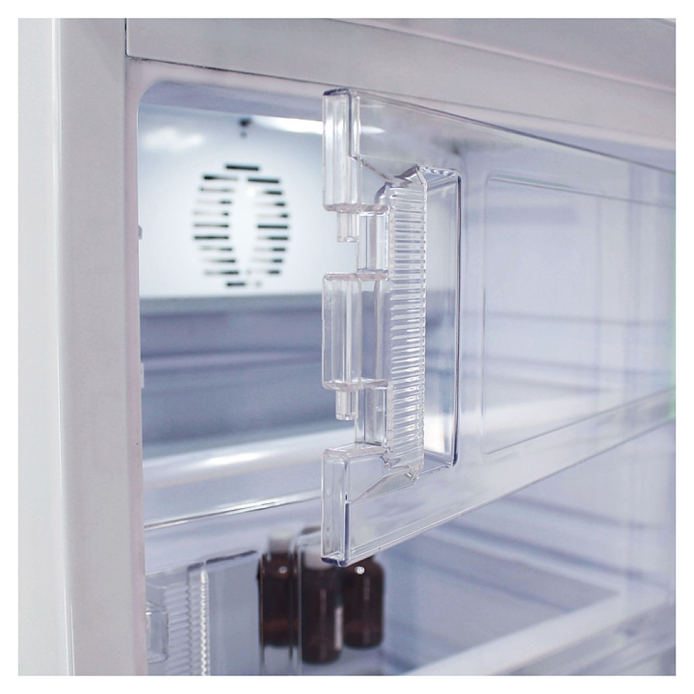 Фармацевтический шкаф Бирюса Б-315K-GB предназначен для хранения лабораторных продуктов, образцов, культур, реагентов, фармацевтической продукции, лекарственных препаратов, вакцин, биологических препаратов и медицинских изделий в аптеках, медицинских, больничных и научно-исследовательских учреждениях, диагностических центрах и на предприятиях фармацевтической отрасли. Модель оснащена 2 камерами, 2 глухими дверьми, 2 компрессорами, электронной системой управления и принудительной циркуляцией воздуха. Световая и звуковая сигнализация информируют об отклонении температуры. Механические замки на дверях холодильного и морозильного отделений исключают несанкционированный доступ.